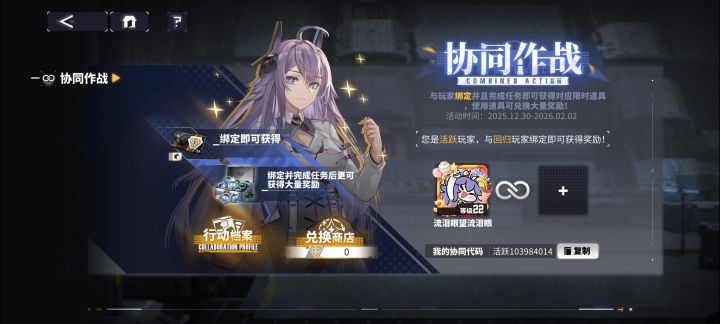 游戏全勤,我的协同代码60029_103294746#交错战线