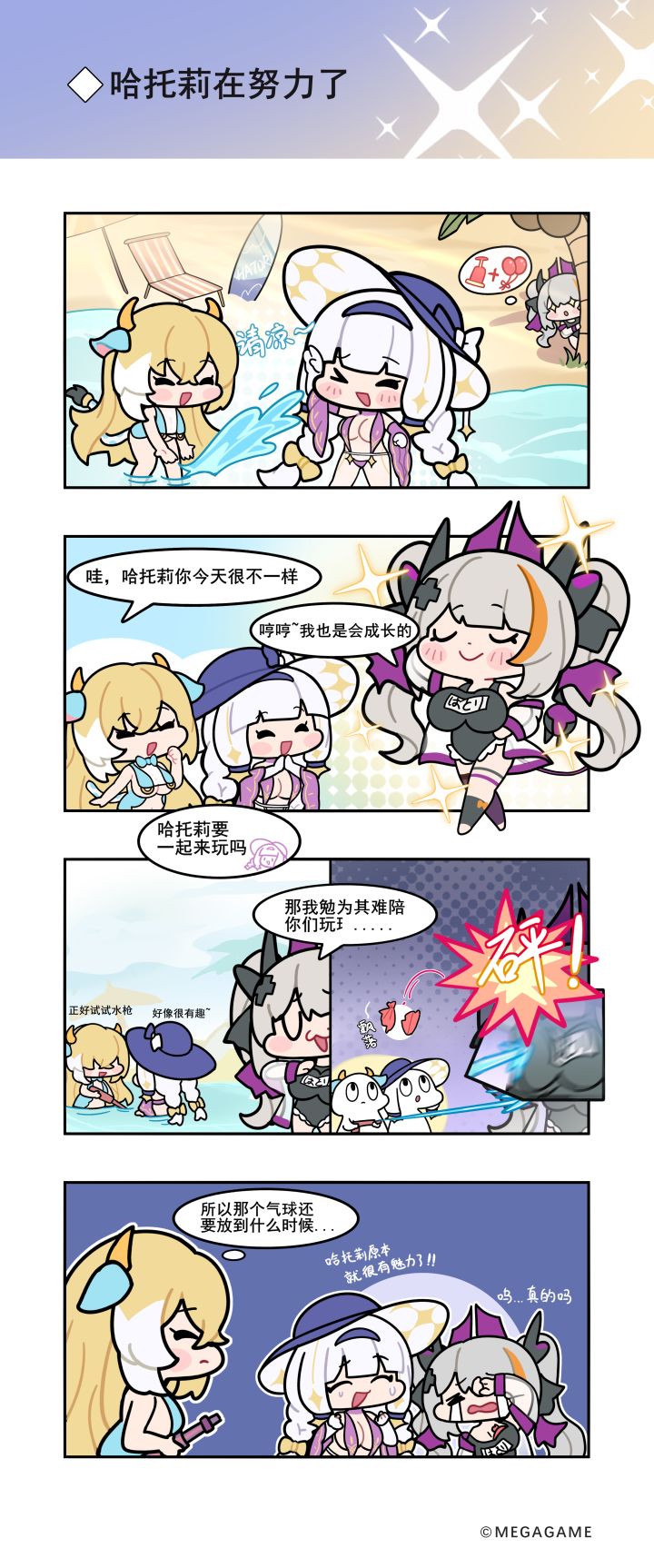 海滩边,哈托莉似乎找到了变强的方法……#交错战线 #虚海奇谭 #发现好游戏 #四格漫画