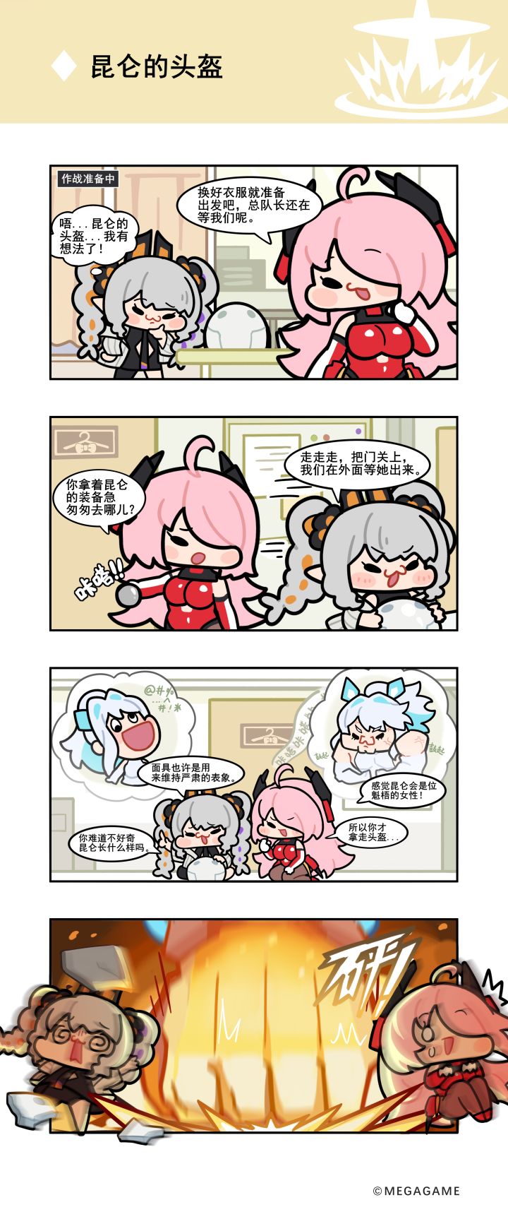 关于第一次摘下头盔的昆仑,哈托莉和C.C.C.有话要说……#交错战线 #渊默变奏 #发现好游戏 #四格漫画