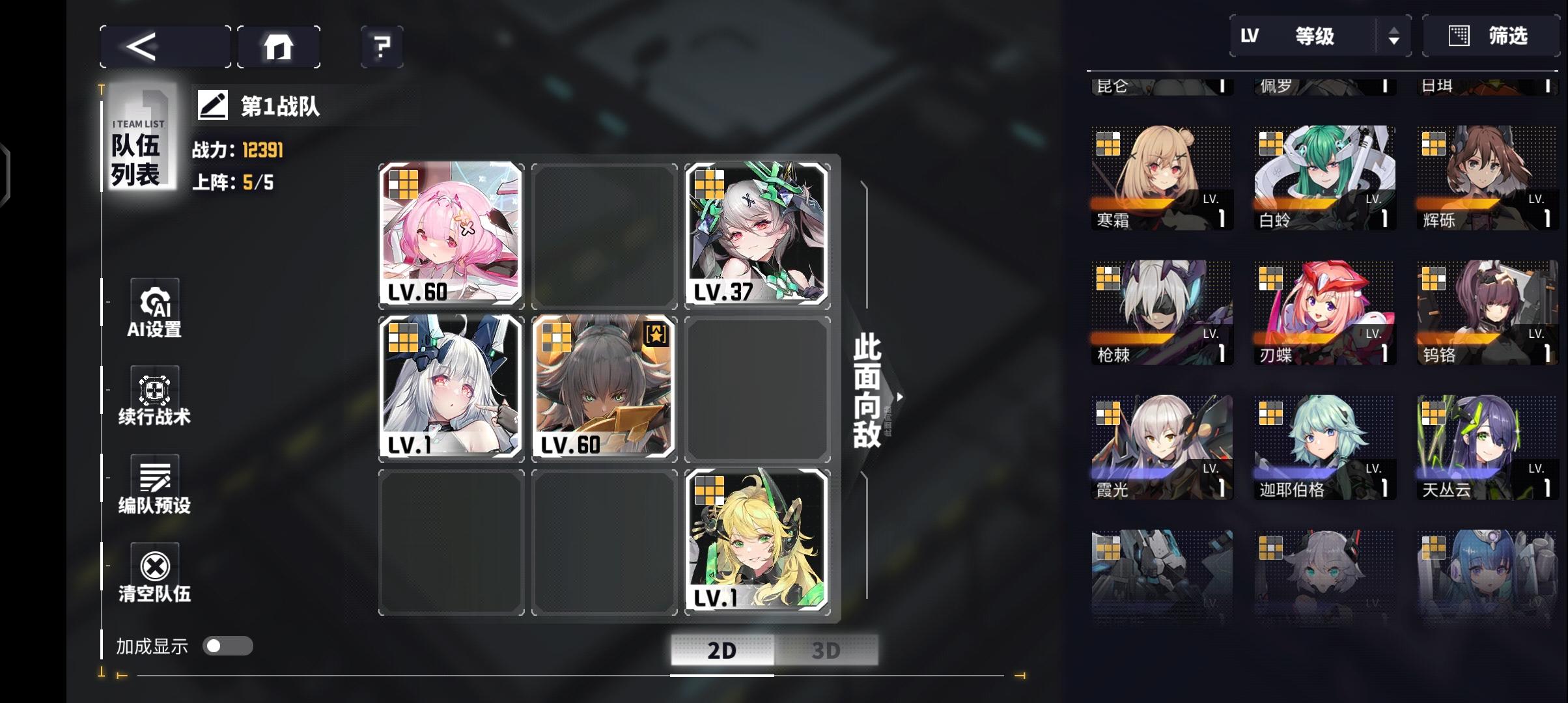 1队:组了琶音、莹、刃齿、乌琳、飓风/阿尔(免疫盾)的国家队阵容。然后开始考虑整个2队。2队:我的定位是清理道中小怪,有一定抗压能力,稳定自动。在未来练度高起来后,可以当刷子大队。并且要放进来一此对策卡,不能白练。群体少了能量攻击需要补充上来。所有就有了这一套,快乐的高倍率复活自动大队,可自动刷怪,可手动应对高压。两主C自带复活,一个单体,一个群体,群体对小怪特化。一个不用放技能的单体