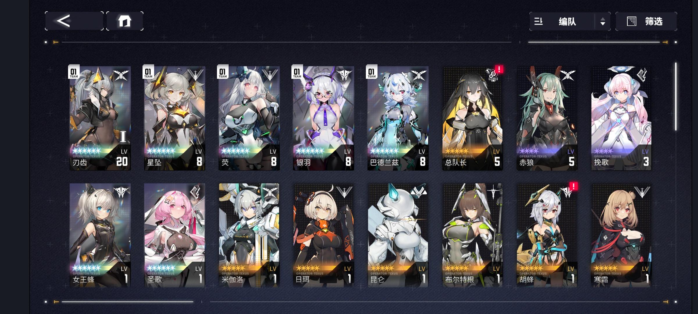 话不多说,直接说阵容排序。🌞一速琶音、二速随想曲、三速进行曲、四速刃齿、五速乌琳。(打稽查者用刃齿并不好打,因为稽查者是物理盾,用萤的能量伤害打稽查者伤害就会非常高,建议练萤做主力打稽查者,我是没资源拉萤了。)🌛打高强度BOSS最好手操,不自动的时候还能用右上角的战术提高战斗上限,除了十五回合过稽查者欠缺一些伤害,其它都满星过去,基本上进入养老状态。另外我想说的是官方这bug修的,游戏上线四