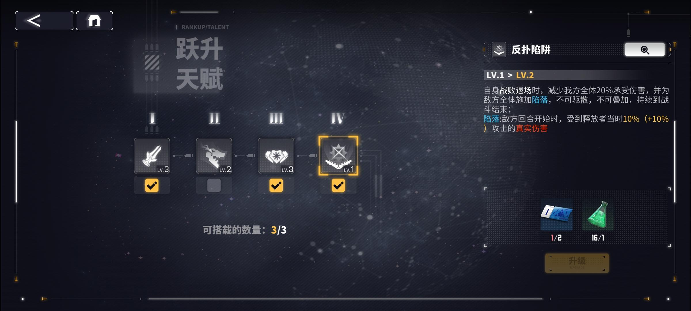 永久的减二十承受伤害,再通过复活可以再叠十减伤,以及他这个真实伤害,第一,是群体,第二,是算当时的攻击面板真实伤害,也就是说,哪怕是叠一回合的,指令之类的加攻击也能算上,目前还不知道这个能不能通过反复叠。因为我懒,以及太难死了,但是后期应该会有扣队友攻击给队友加攻击这类型的辅助,主打一个未来可期