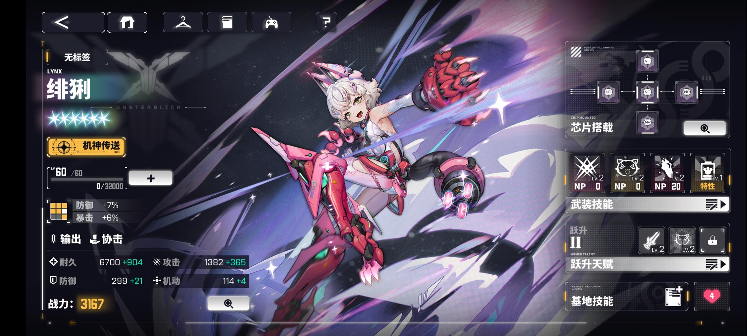 整体战力16000左右全图流程续行战术个别boss图需要手打,其余图只需要挂机。主c刃齿,紫色品质物攻芯片,破三阶之后没必要再往上拉了,输出已经足够了,ov3+战术20%加攻可以砍爆一切单体或者双人机甲组。副c星坠,杜兰德尔,飓风,任意群体能量攻击角色,用来破物理屏障,清群怪,压低血线,机动要在刃齿前面,让刃齿收残血。单体副c,遇见2-22这种单体boss,副c就换单体角色就好了,我这里
