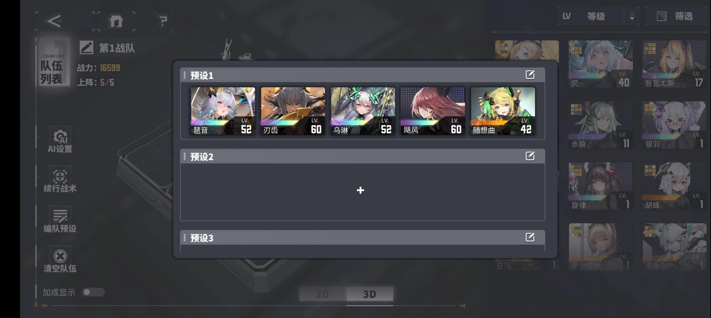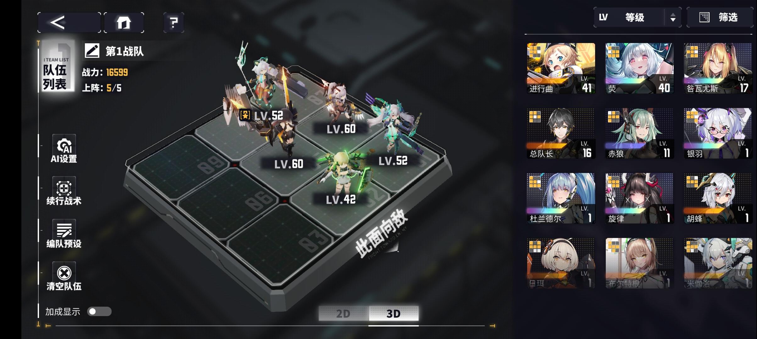 清理完1-17之后出来清理奖励,把基地和合成工厂升到四级.跟着引导任务走。通关芯片嵌合记得把所有第一层都打了。不要开双倍把战术都点了,不要升级,战术在大厅左侧。最后每次出来都记得升级接着升级刃齿突破40级,前面的突破跃升材料,打第一层,不要开双倍,不够四个就扫荡。后面的可以直接背包里自选材料,也可以点击材料去把相应关卡扫荡掉落合成扫荡加经验和好感度,如果一队经验满了,可以上二队扫荡来加好
