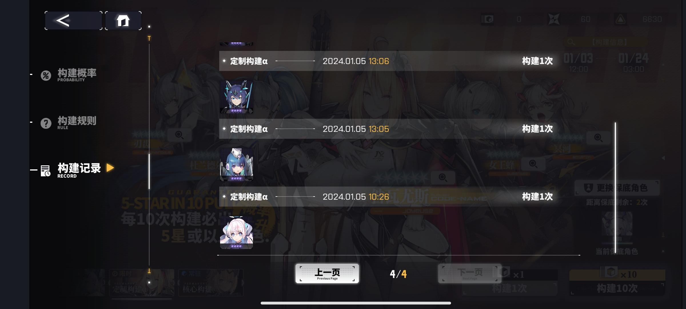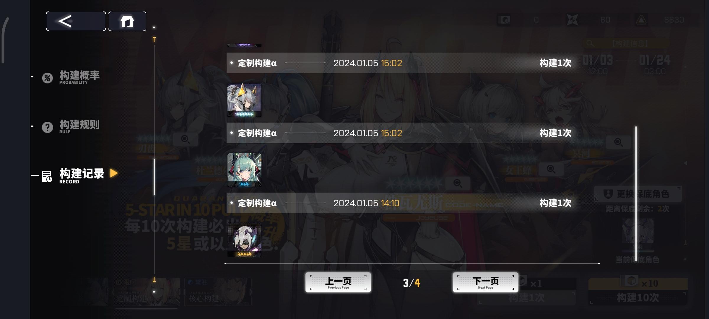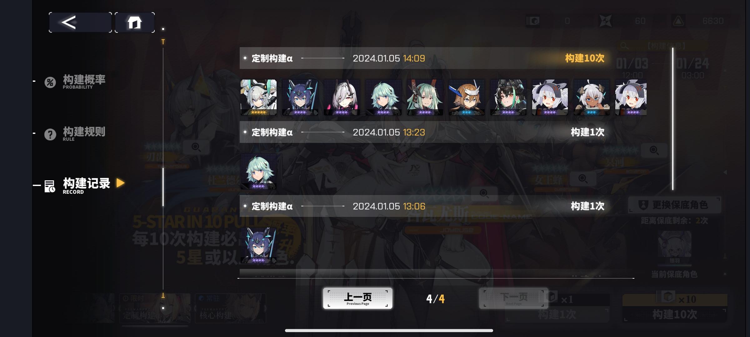 因为他这个10连机制问题,10连算1抽如果你是非酋像我一样那么可能保底是59不是50抽,我怎么知道的,因为我刃齿就是53出来的前面10连第二发出了彩,可惜没截到图,他这个记录只保存4页