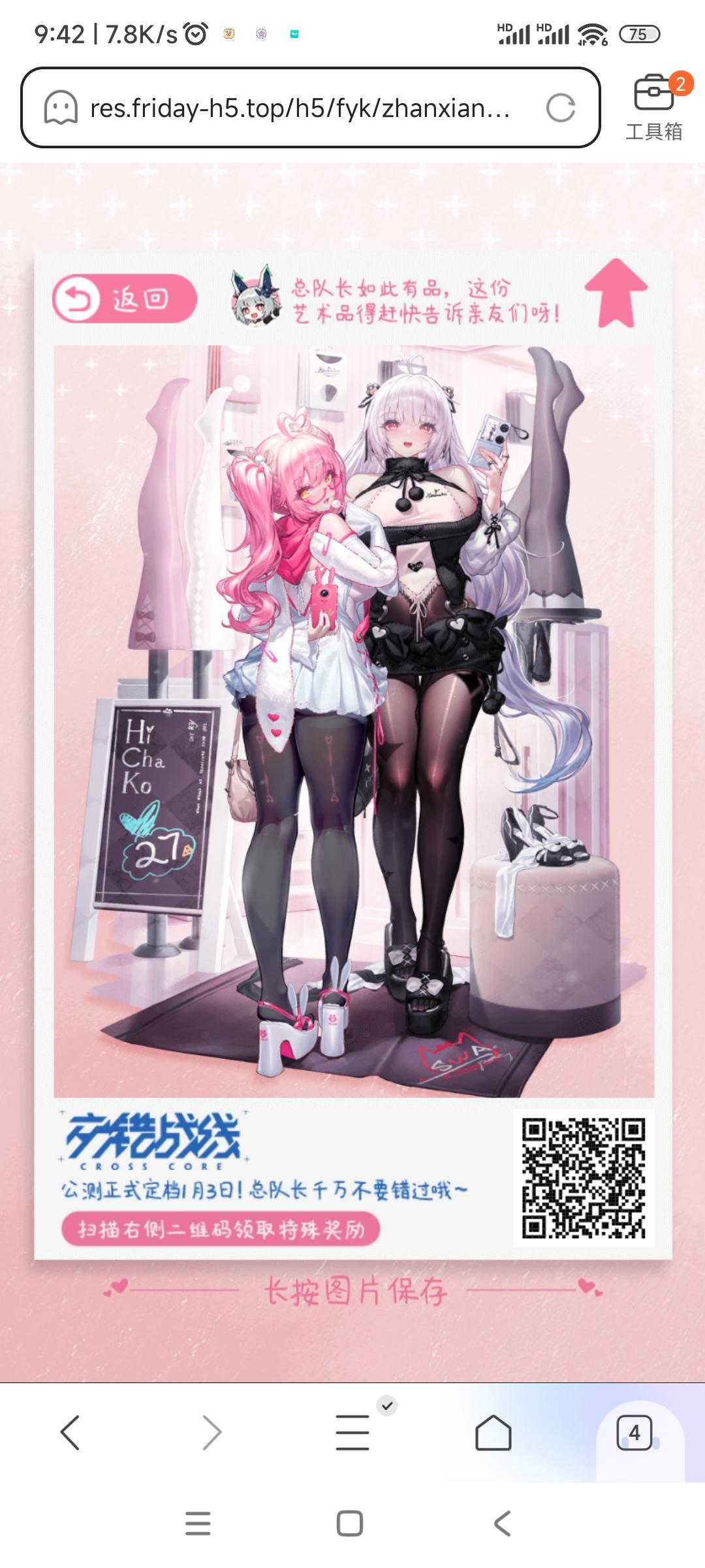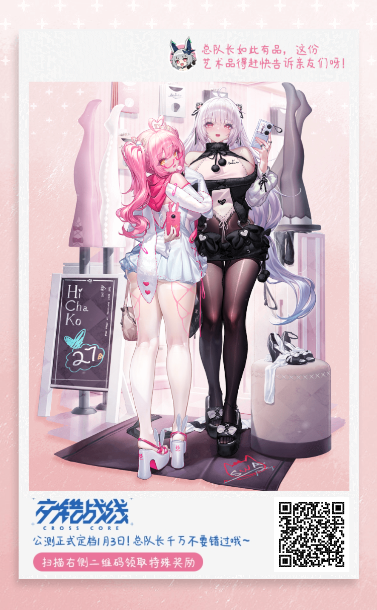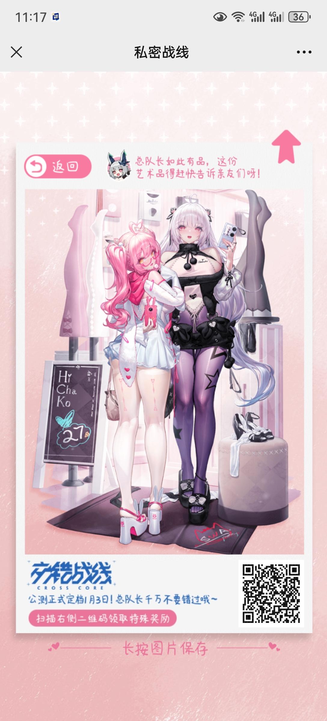 在2023年12月27日~2024年1月18日23:59,可以通过参与私密战线H5小游戏,获得“构建蓝图*3”,就是3抽,还有实物奖励(难道真的有?)扫下方二维码就可以参与了,别问我为什么这么小,截全图不给发,大家懂的总结:1.10抽:CROSSCORE01032.时装:SYWZWJCZX3.TAP官方奖励:0000-0007-DVHY-TNMB-P5074.H5的3抽:自己参与H5活