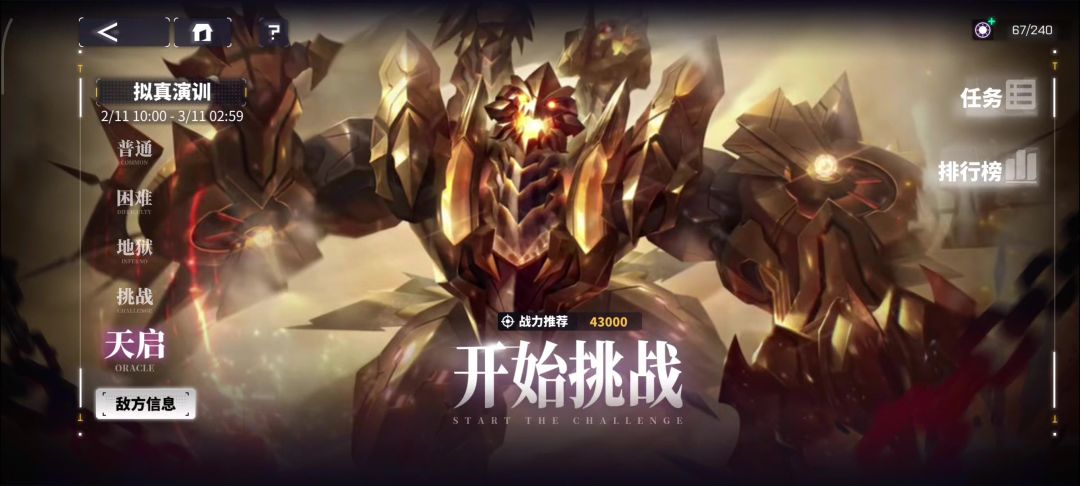 新活动拟真训练“天启”难度1500积分攻略教程