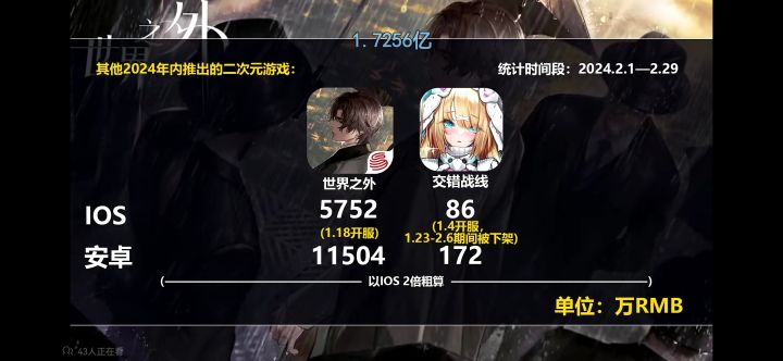 此图为二观的2月流水,只有二百多万,交错战线还能坚持下去吗?不会提桶跑路吗?@交错战线