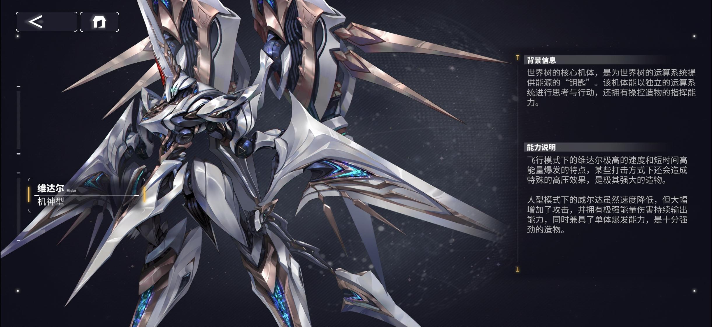 敌人档案里有敌方三台机神,虽然没有建模,尽管没有详细设定,好歹有张插画和粗略说明。而主角方那么多台机神,在档案里就没有提到一句话……忍不了了,女人加衣服不算啥,每天清清任务就没事干刚好轻省,高难度打不过打不了慢慢提练度。但只有我家机甲在档案里没有建模让我摩挲,没有详细机体设定让我看,这塔喵滴怎么忍?官方你们这档案咋全是一堆娘们?那群娘们放看板里就得了,不在档案室里放机甲设定和