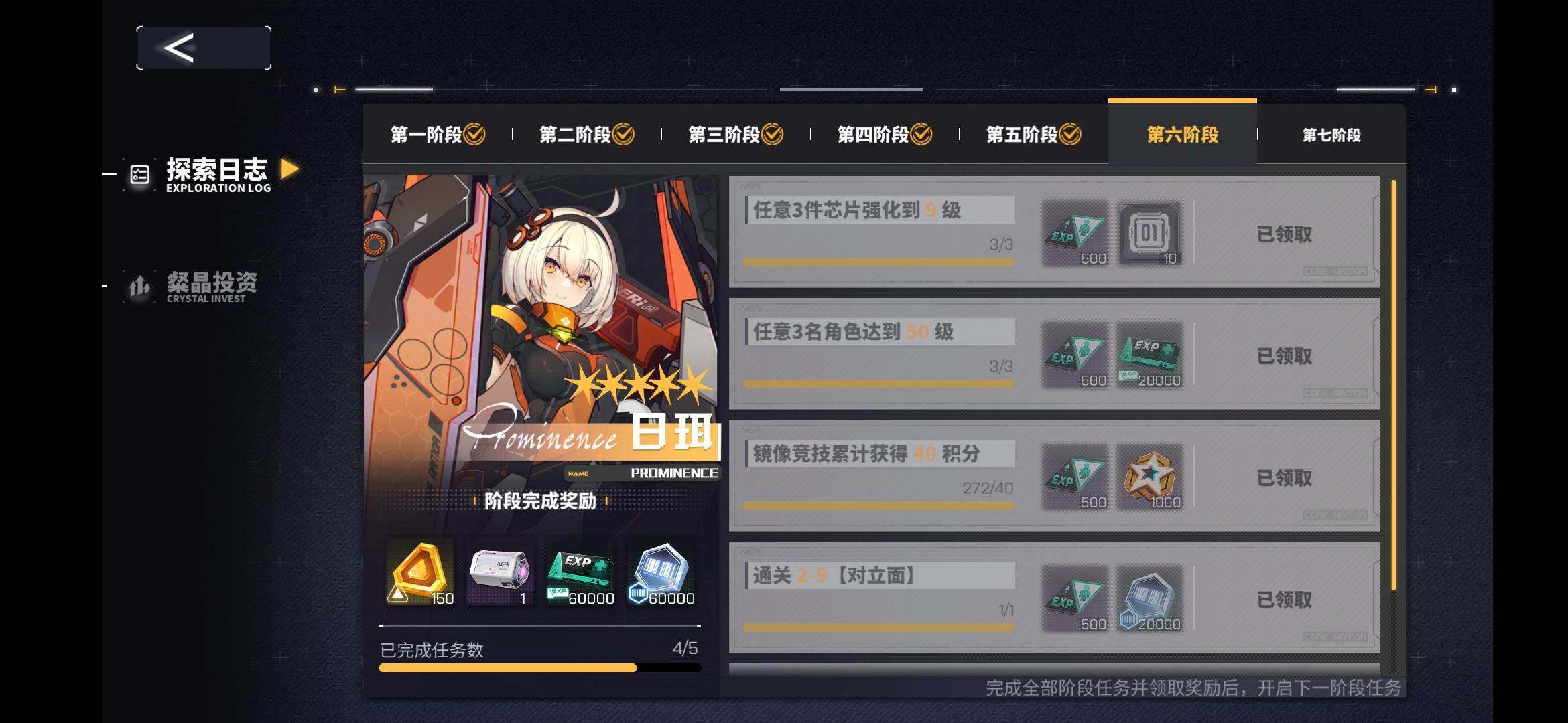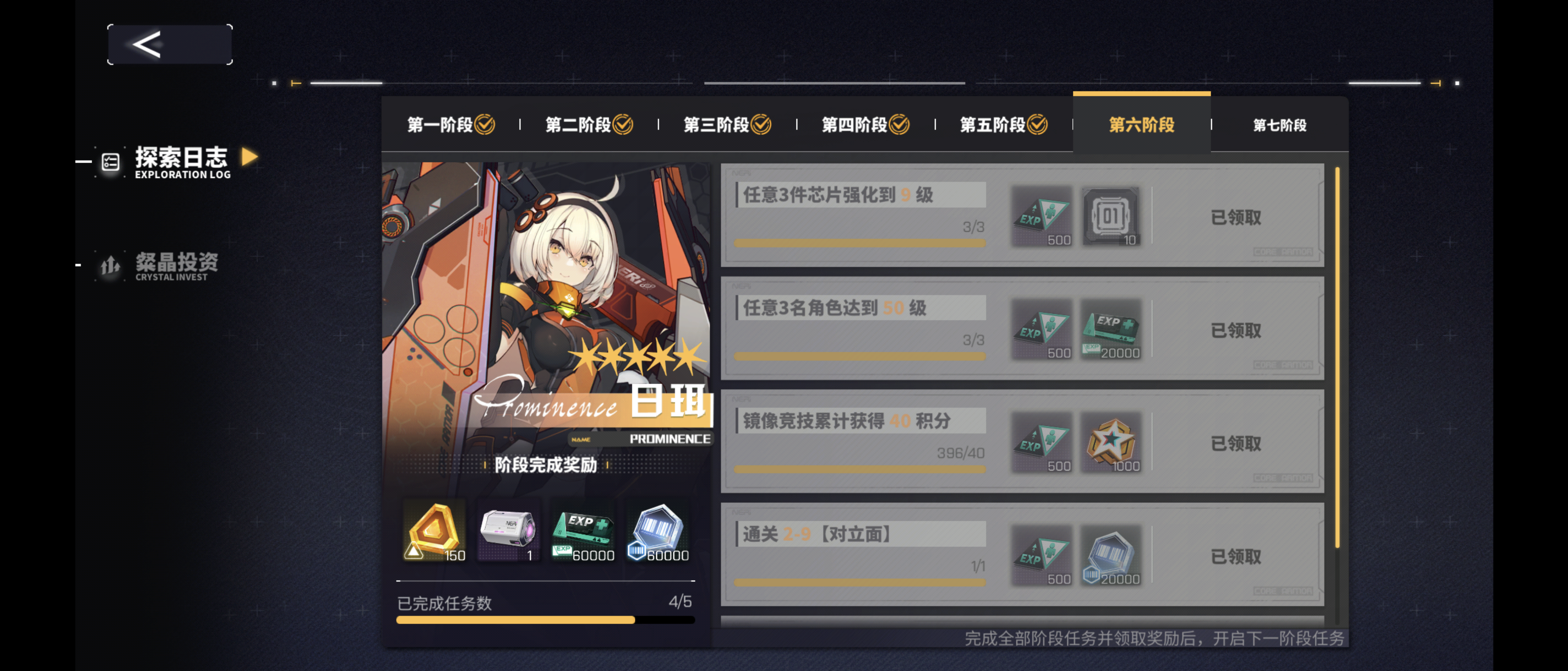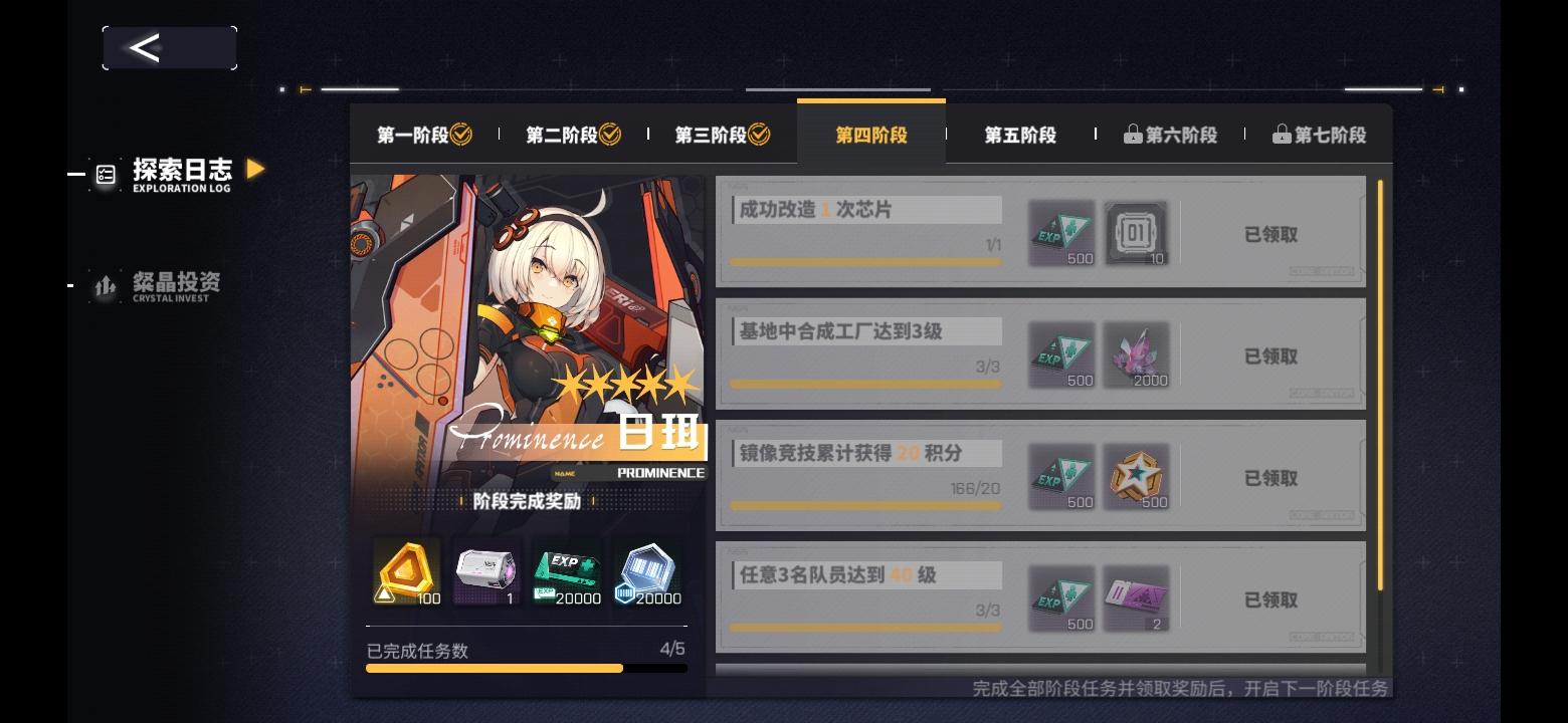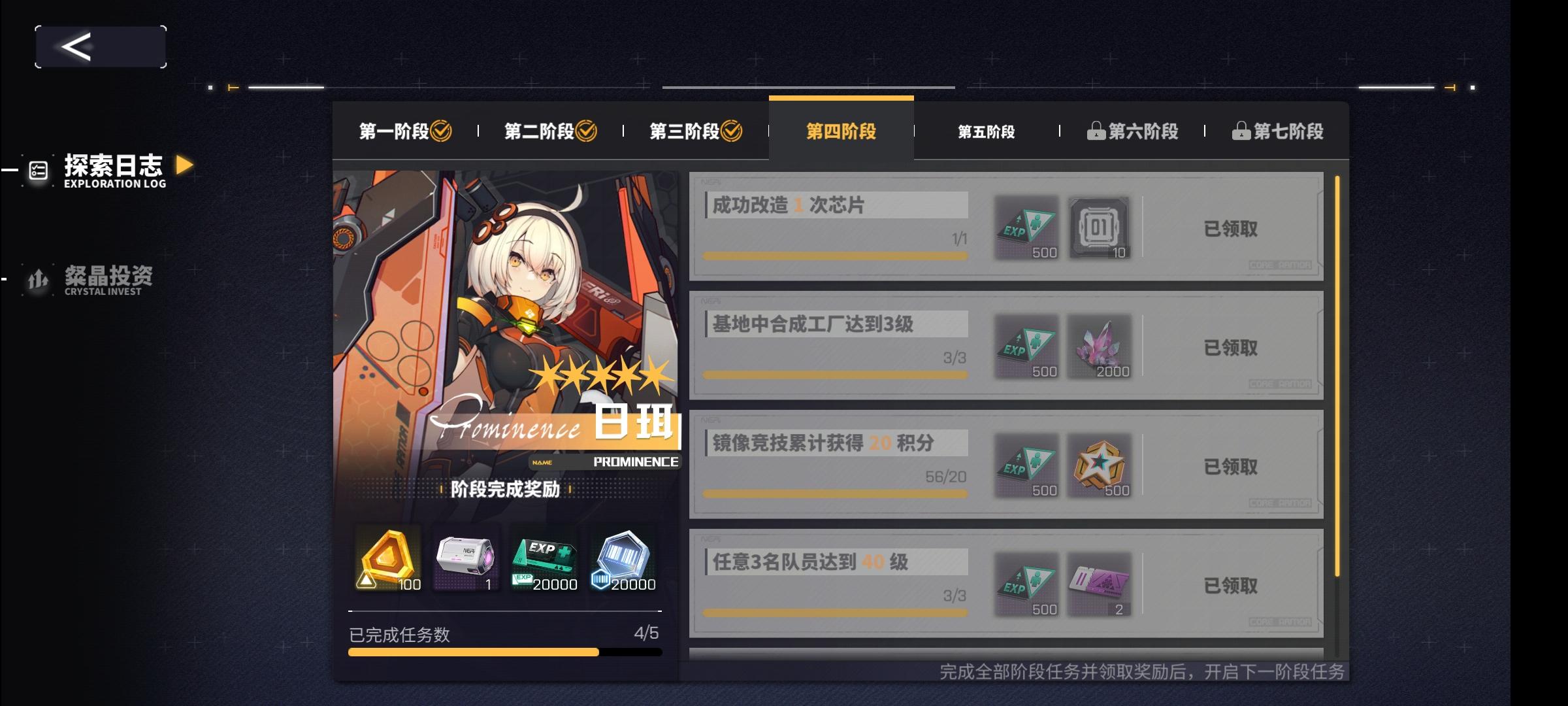 探索日志改了竞技场点数要求之后已完成任务数卡住了,之前400,改成40之后小任务完成了,左边进度一直卡着,每次进游戏就会弹20积分 40积分已完成,奖励也领不了,我这边7阶段都完事了
