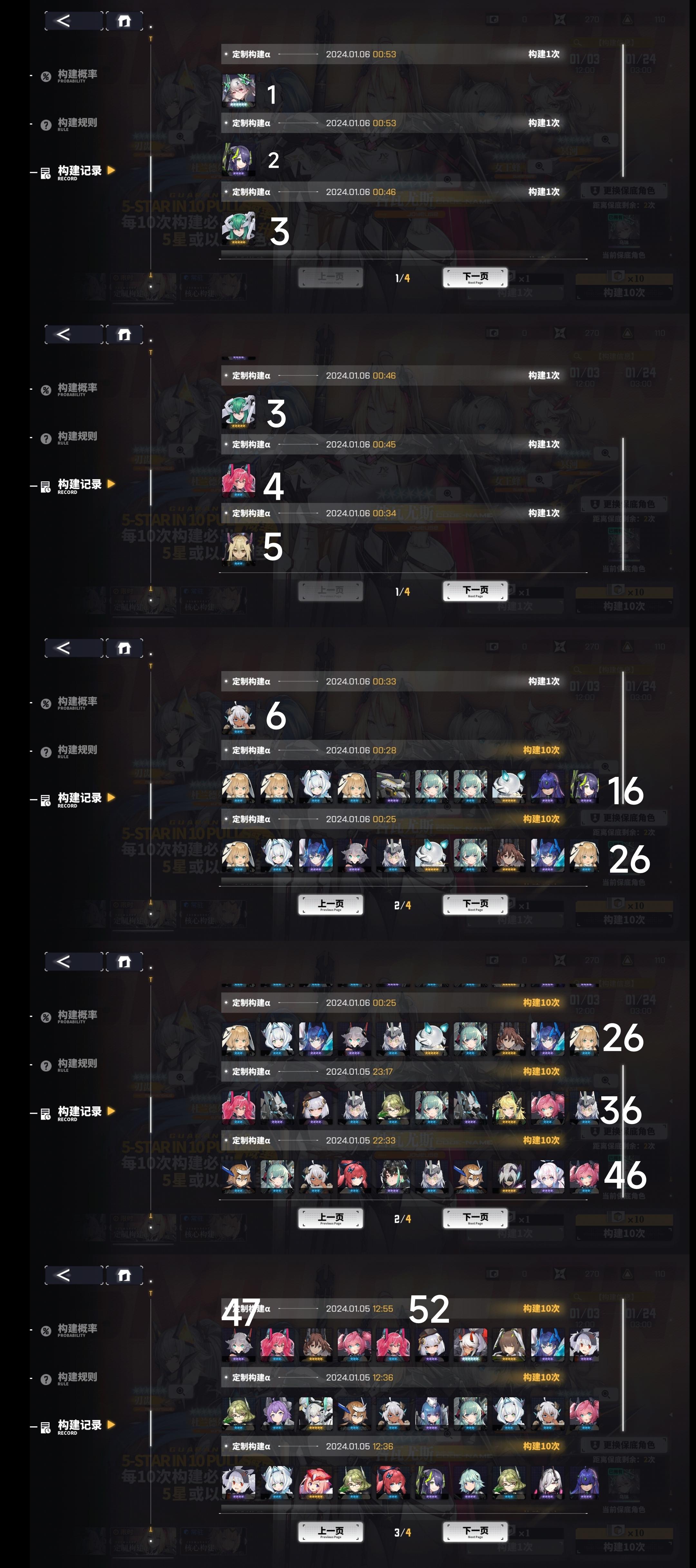 每一行旁边的数字是积累的抽数,数了一数用了52发,以为眼花了又数了好多遍。我应该没数错吧😰😰,眼尖的兄弟帮我看看