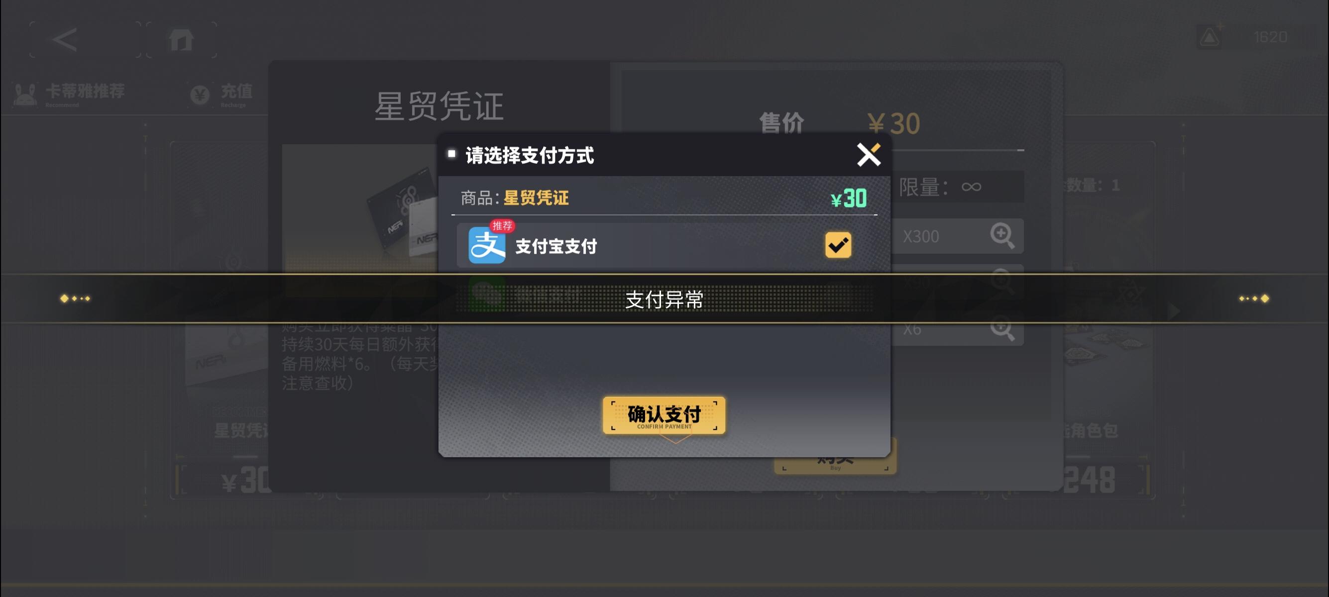我一点支付就交易异常 能不能解决一下我要氪金的问题啊