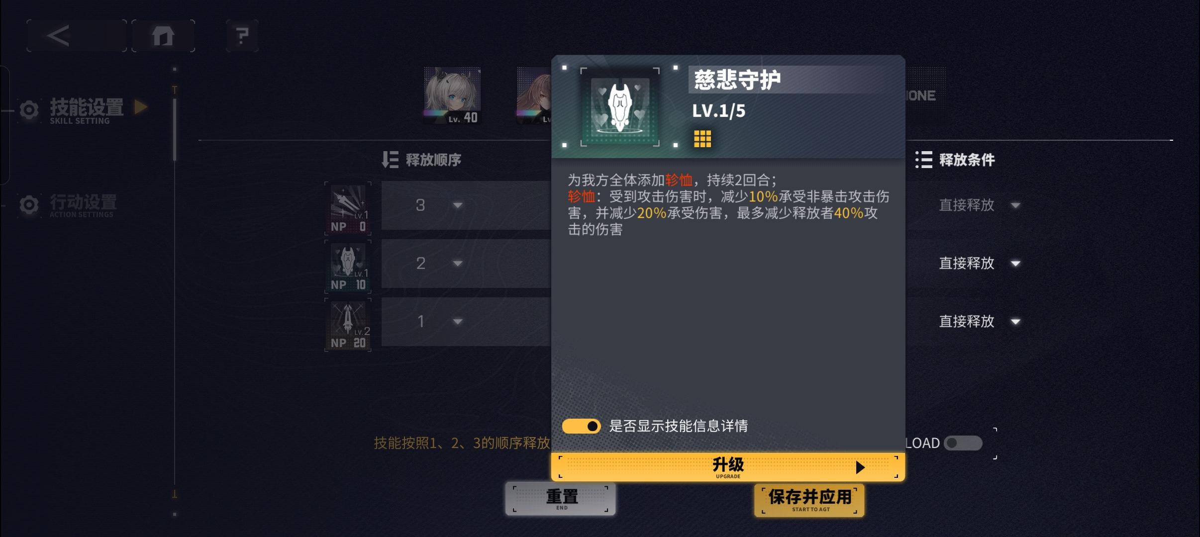 慈悲守护持续时间两回合,而自动设置却没有每两回合放一次。每个回合都在放,np直接空了都