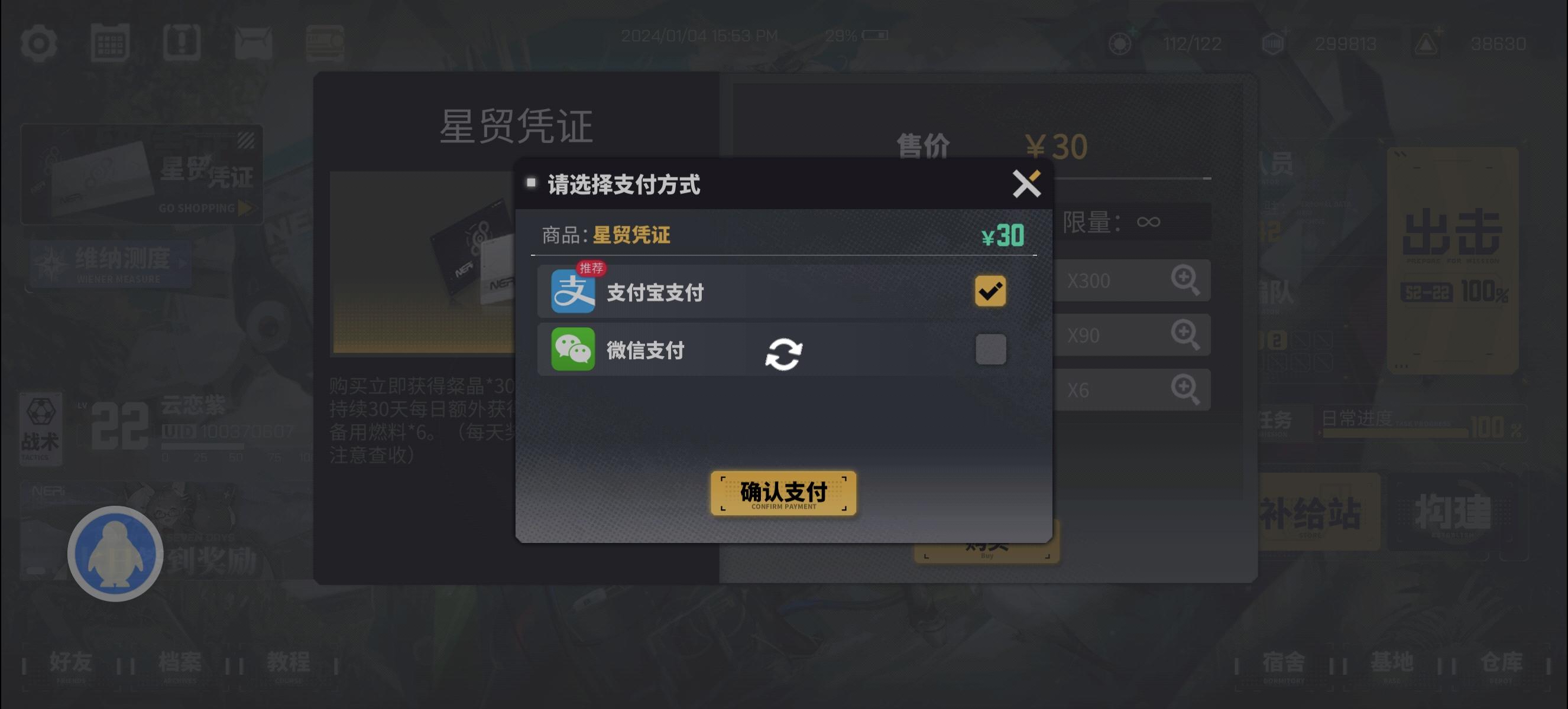 麻了又进不去了,才充完600多开完送璨晶的箱子,准备氪张月卡的,结果卡住,重登又loading了=_=