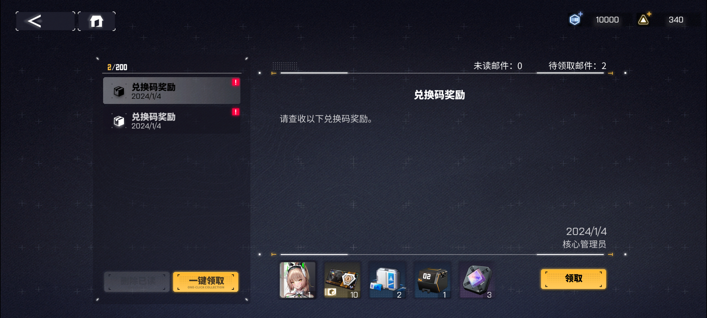 邮件里你们根本就没送我东西,这个还是我自己输入兑换码领的