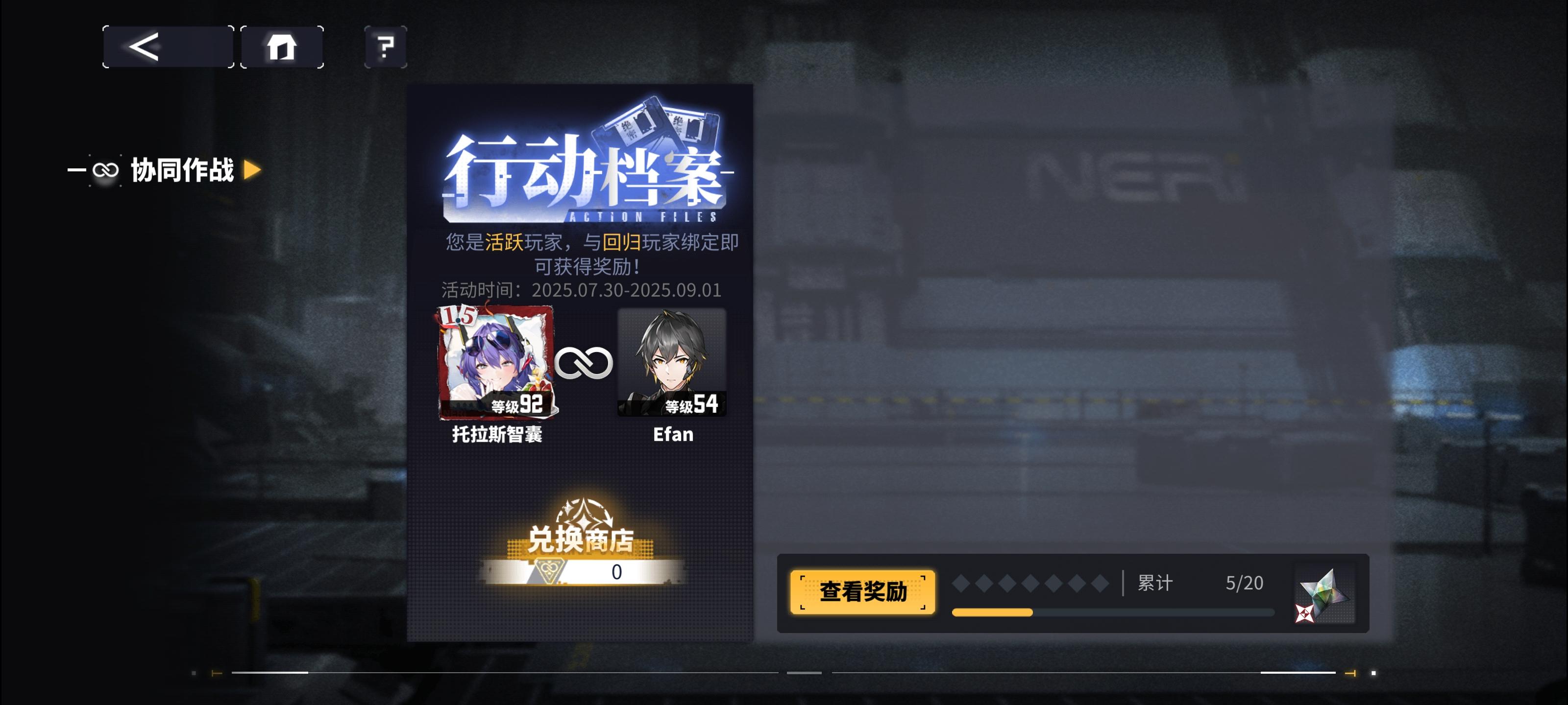 活跃玩家协同任务不显示