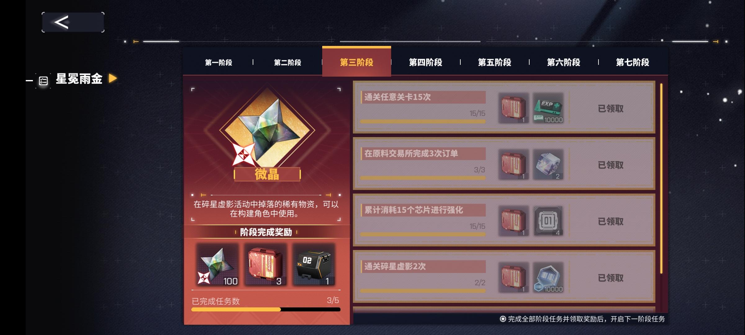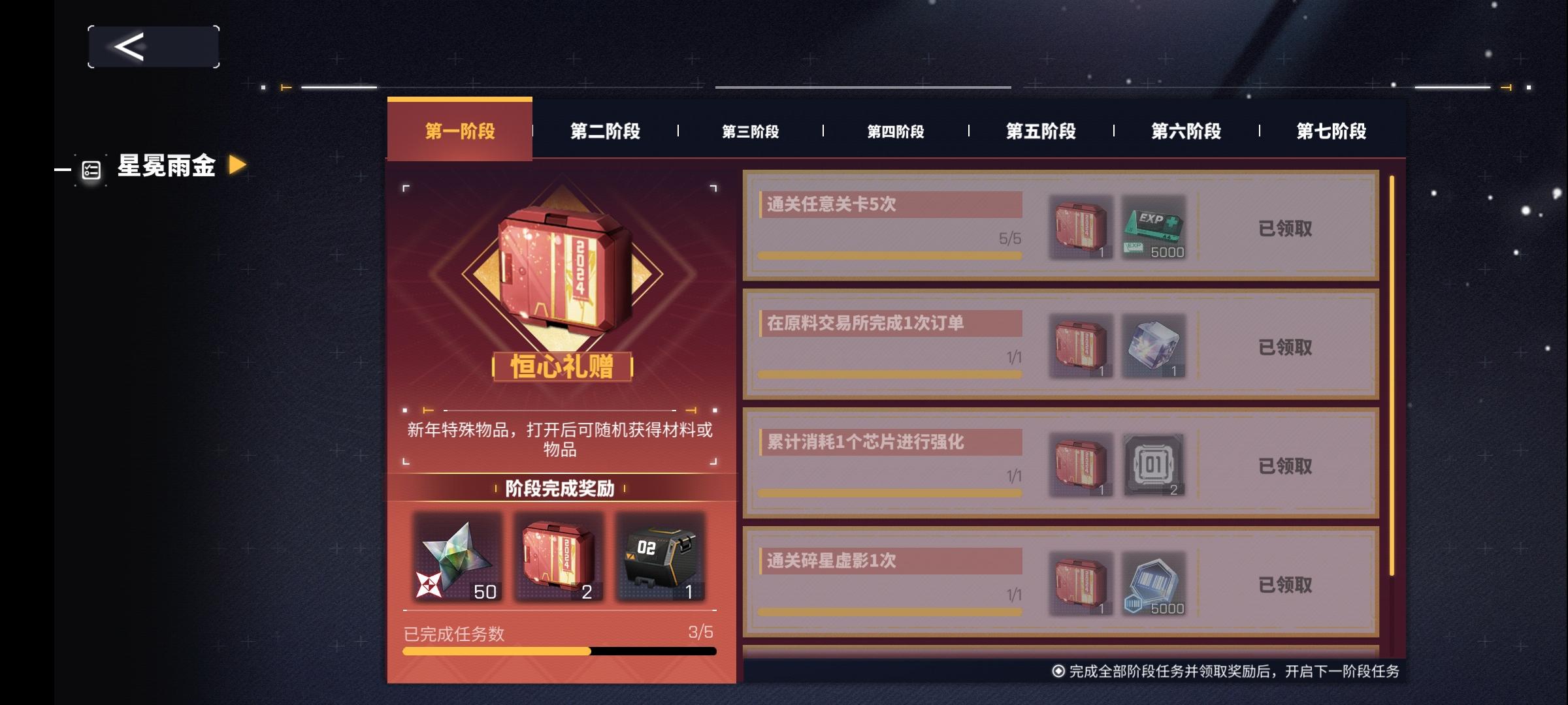 前面几个阶段的五个任务都完成了,但显示只完成三个不能领取奖励是什么意思?而且你们还标注必须完成前置阶段才能进行下一阶段,我这边是直接全开的,这是程序bug还是不仔细?PS:没有魔改,tap下载的官服安装包。