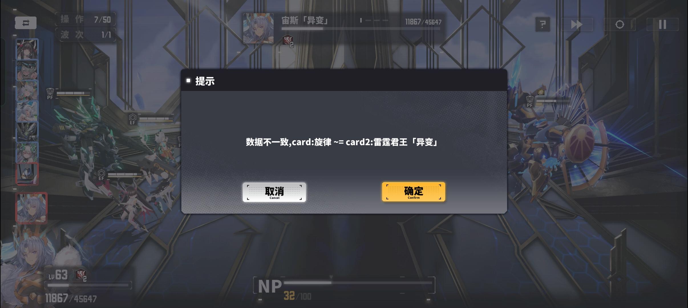 打虚影宙斯boss到第7回合就跳出一个报错,试了两次都一样