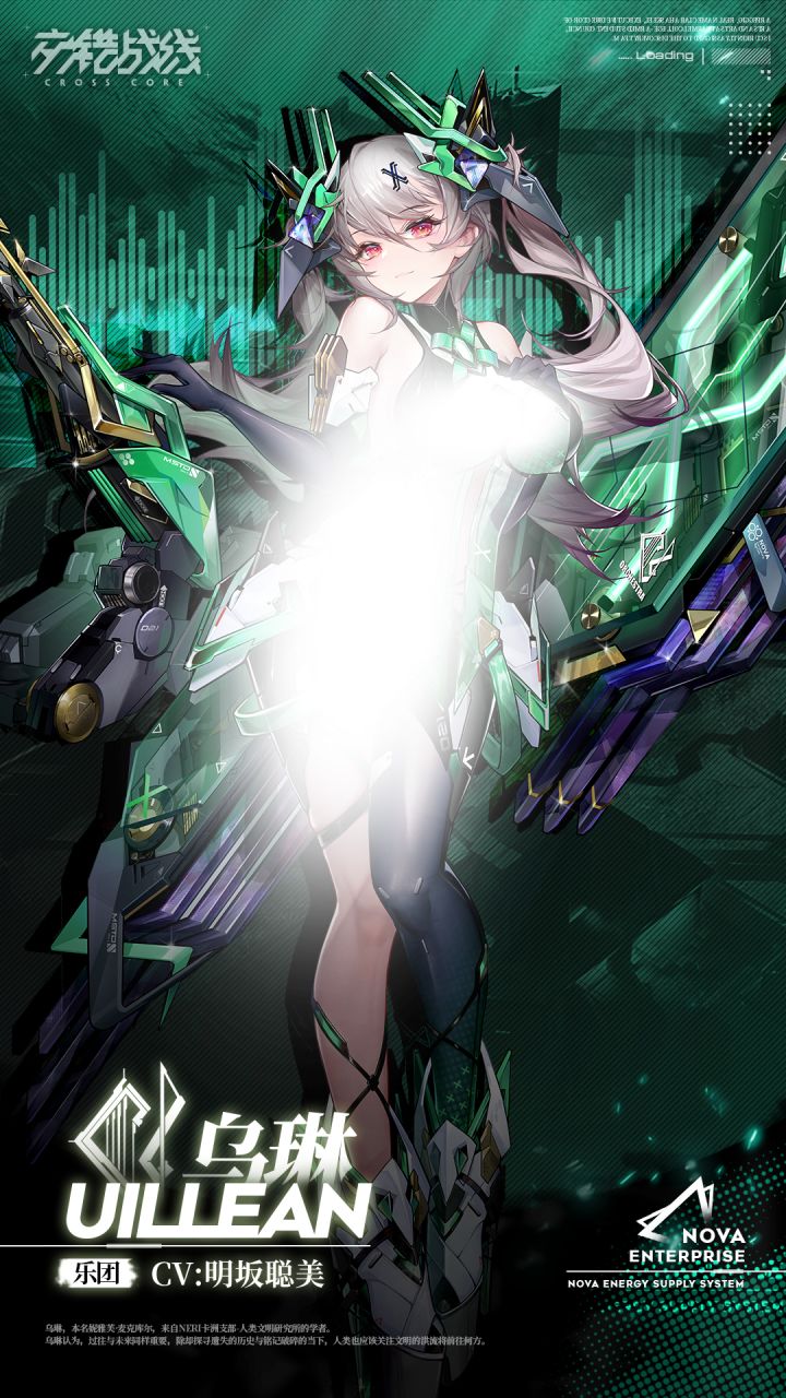 乌琳,本名妮雅芙·麦克库尔,来自NERI卡洲支部-人类文明研究所的学者。乌琳认为,过往与未来同样重要,除却探寻遗失的历史与铭记破碎的当下,人类也应该关注文明的洪流将前往何方。为观察人类与碎星人碰撞后所产生的新意识形态,忠实记录前线战场的一切故事,乌琳自愿申请前往碎星,完成这项极其危险的工作。 闲暇之余,乌琳会将自己的所见所闻,编纂成便于阅读的乐章与诗歌,并为基地的大家开展免费的演奏会。或许,我