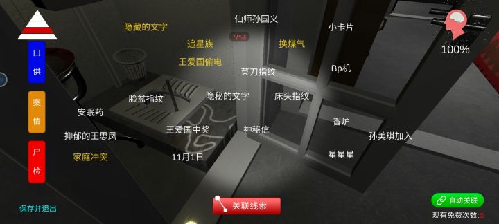 大部分脑力来源关联 卧室的凳子是可以移动的 钥匙上线索指密码为:711