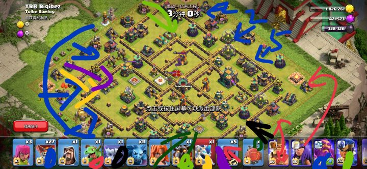 来自纯九营金秋yang的小挑战,国服。纯九营新阵,各位有信心在三刀之内破出吗?九本入内规则:禁闪电女巫高本级高级援兵。入内后自觉换攻援(只能九本科技)援兵已提前安排。看阵时间:5分钟,准备检查配兵时间:30秒(超过5分30秒)违规处理挑战方有三种进攻方式可选有援进攻(无奖)无援进攻(1元)花式/整活进攻(1.5)可申请带援,但不可用援兵里的法术。三次进攻机会友谊第一,比赛第二,