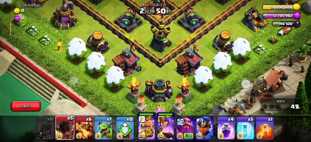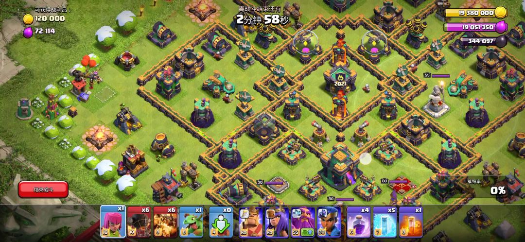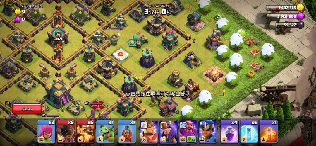 本人想法仅供参考: 用投石车,解决掉天鹰火炮,为了投石车能解决掉后面的多头地狱塔,所以要用气球快点帮忙解决掉旁边的弓箭塔; 快要解决掉天鹰火炮后,在6:00方向下双王清边,女皇的地方下毒药,然后下大金龙和永王给上狂暴,在大本营快被打掉后开金身,规避爆炸伤害; 蛮王走到7:00方向左右从10:00方向下闰土,剩下的冰冻看着用,然后基本上坐等三星。 然后就是兄弟,你学会了吗,学会了就点个关注吧。 如果你一字划三星就当我没说🌚🌚🌚