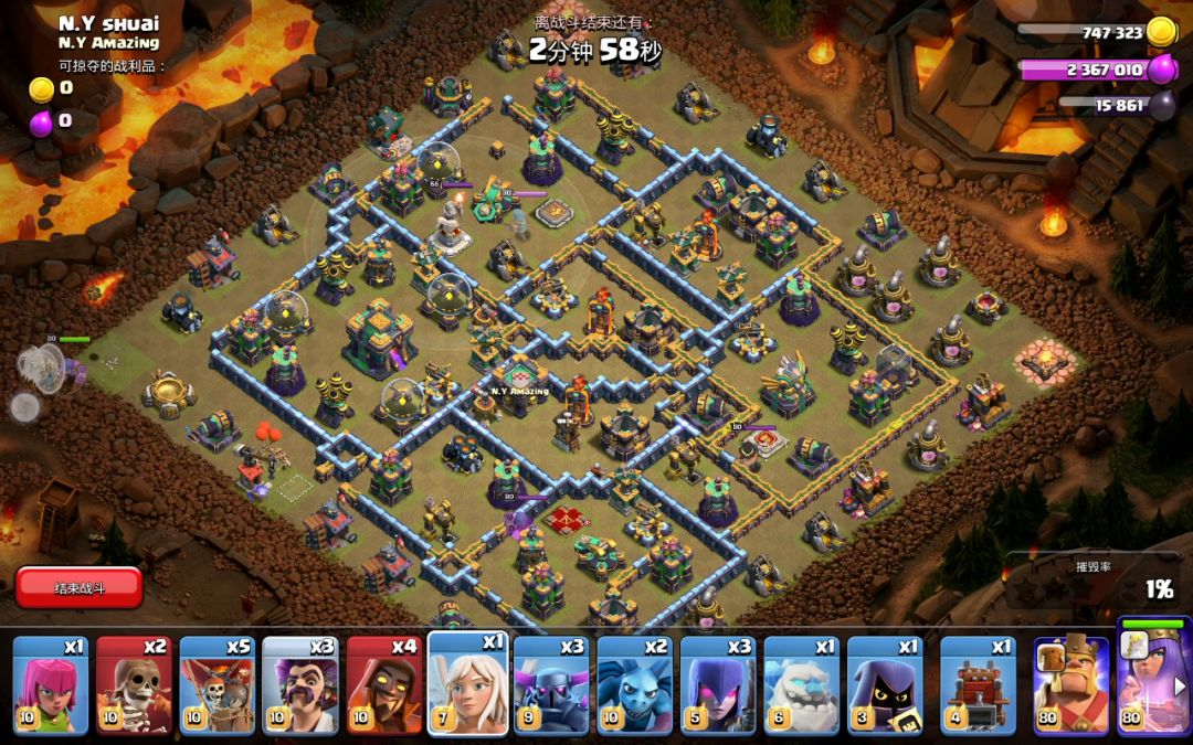 注意了,下冰人的时候一定要把车子往后一点,还有摧毁迫击炮的时候,一定要把气球放前面的迫击炮,如果没被拆掉,蛮王会走偏。还有最后下达不对的时候,至少要留一个兵营,你不要打那个兵营过程中就会直接帮你打掉,还有盾神走的方向,一定要把握好。