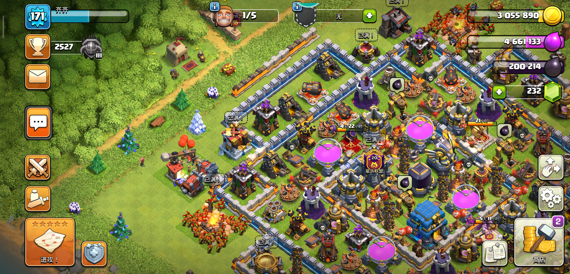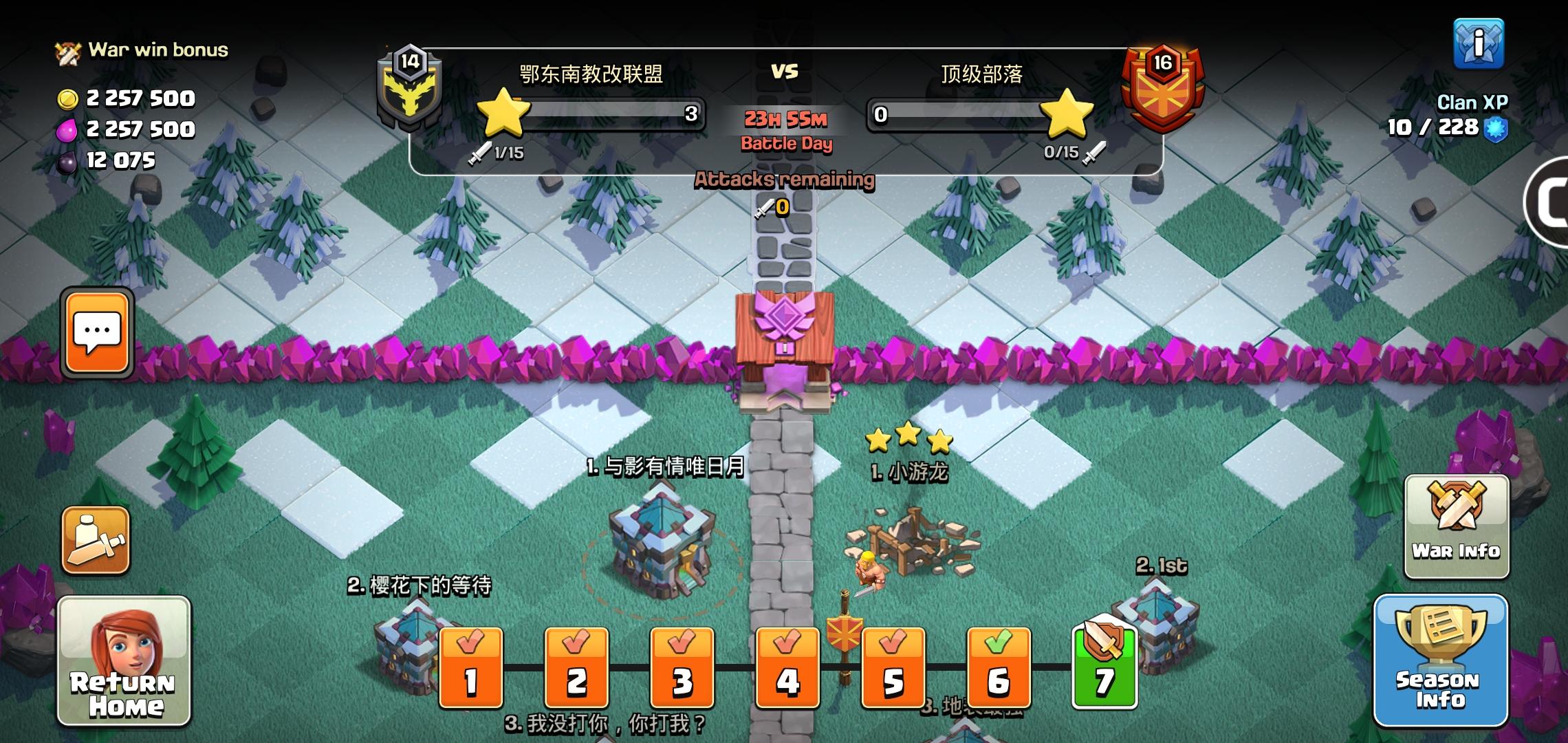 四角: 全景上下角:我玩这个游戏有四 五年了 。刚一开始有那些节日礼物什么的会清理掉,随后听朋友说尽量留着,留个纪念嘛!后来想想也对,然后又想把四周弄成树木,这也是个乐趣哈哈 因为你也不知道下次刷障碍刷在哪里,不行的就清理了。唉 昨天的大扫荡搞得挺凶的!我部落的有个被封号了。。吓得我赶紧通知群里其他人 哈哈哈 被封了就不好受了,毕竟玩了好几年了,也有感情了。官方这样一棒子打死一群人感觉不怎么