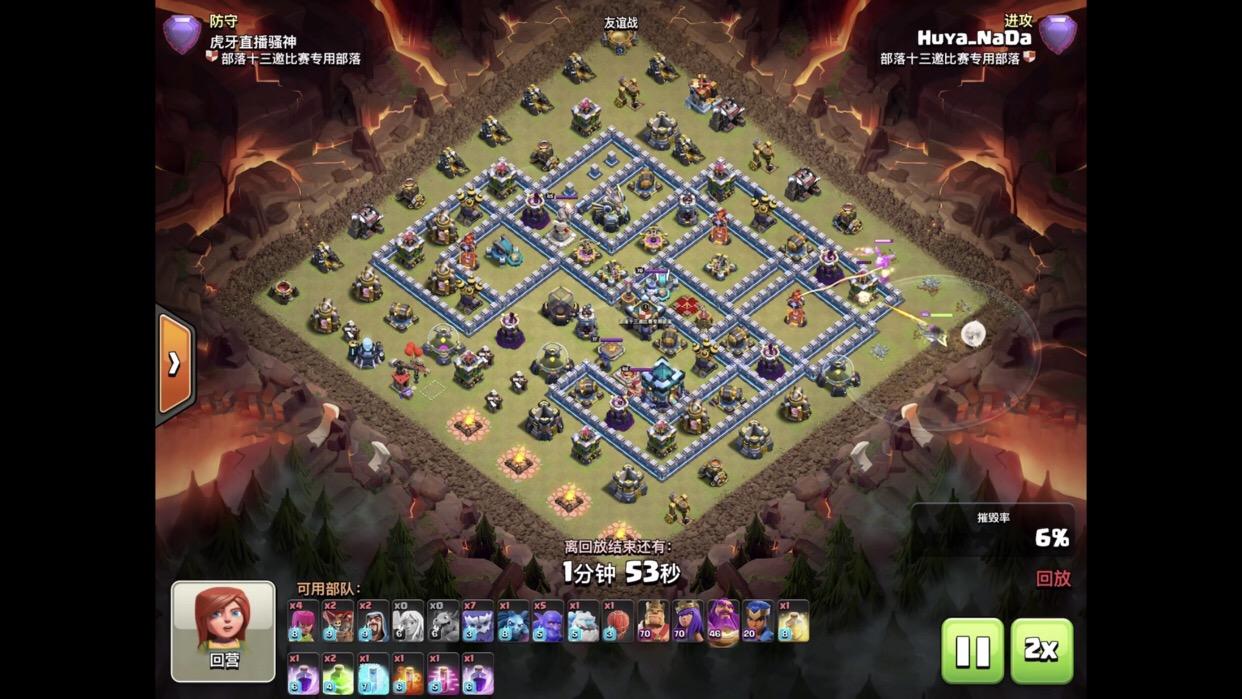 昨晚“部落十三邀”的直播已经落下帷幕。各位主播带给大家的,也不只是一个大家娱乐对战的氛围!更多的是带给大家13本的各类教学。比如天女猪(配合闰土)、镜像雷龙狗球、雪怪流等等。这里主要是来分析一下Nada的雪怪打法。首先这是第一轮6进3的时候,Nada凭借着新兵种雪怪成功拿下第一个三星。可以看到nada选择3点进行天永前戏清边。这个位置防御建筑较少,配合龙宝将地狱塔区域完全截断,以保证大部队只往