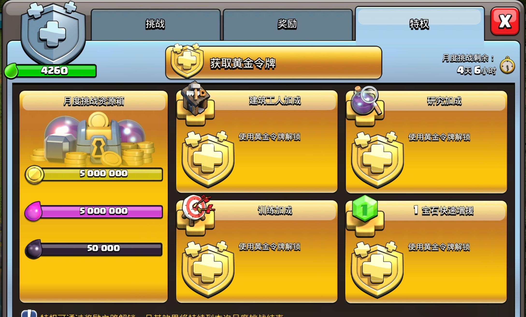 月度挑战宝箱满了,但是没有买黄金令牌。如果在满了的情况下买黄金令牌,里边的资源是登顶2500万吗?