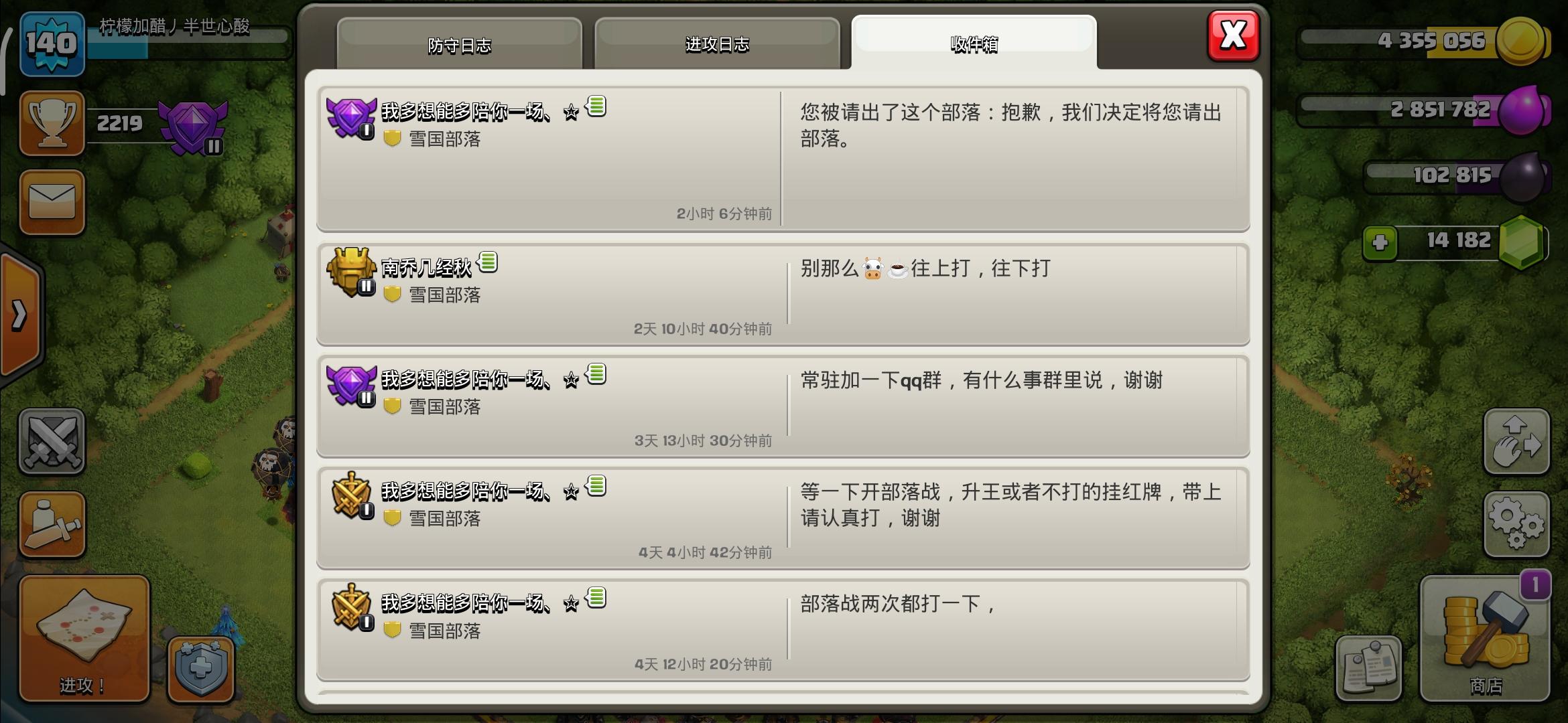 xswl,刚来这个部落的时候还在恢复期,19级连个12本都没有,我跑进去为了给捐兵还傻啦吧唧提前升了11,一个月了快,上午还聊天聊的好好的,现在12-13本来的多了就直接翻脸踢了呗,之前还说就算等我上学也不踢我呢,我现在还在线天天捐兵呢,🐮🍺熬!真厉害👍🏻!