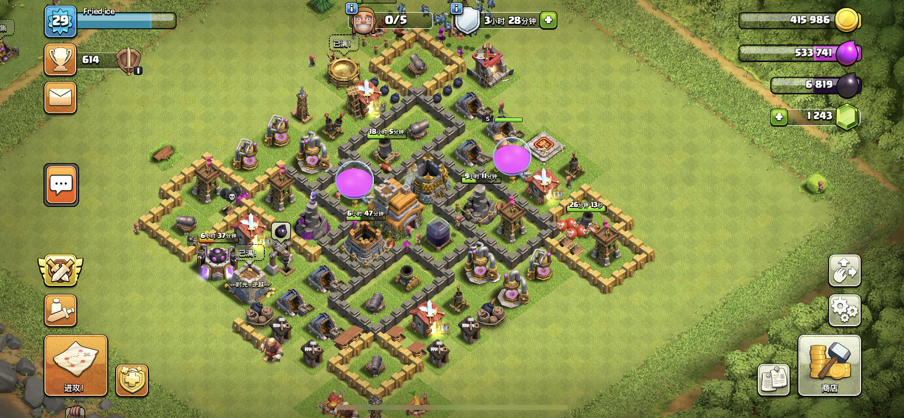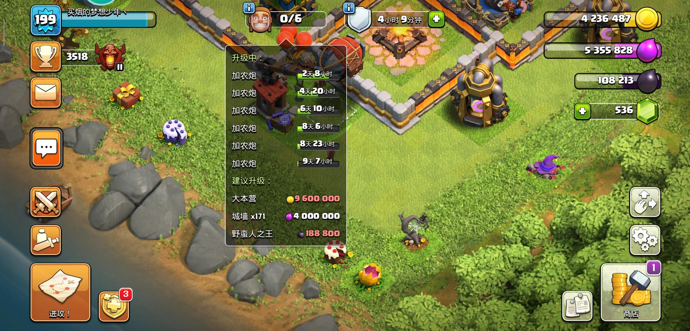 6个加农炮一起升级提前200级留念