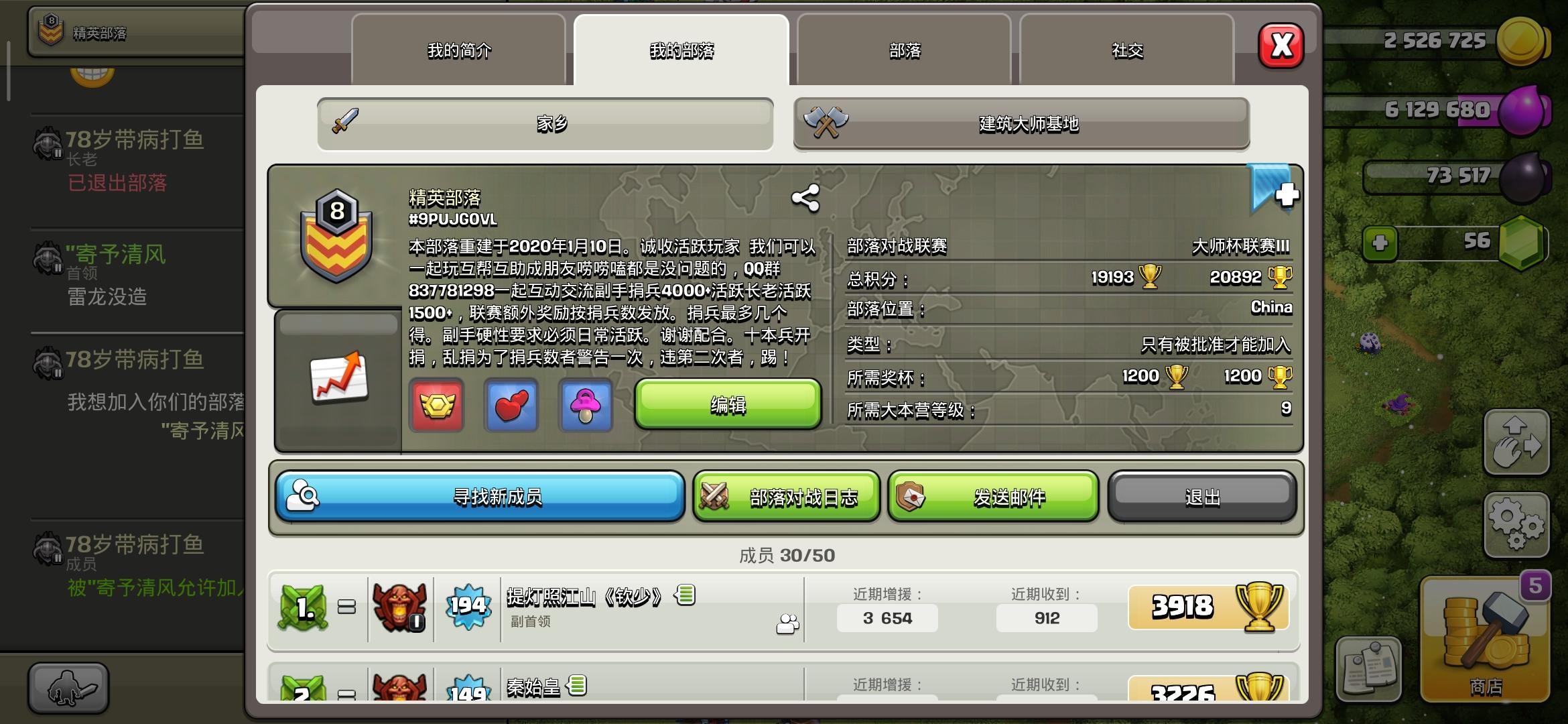 欢迎加入八级部落(精英部落)定位大师三,于2020年1月10日重建部落,首领副手手动奶号,甚至砖石秒奶。😭还有诚聘12本以上能力强活跃的副手,常驻更好。期待你的加入哟。标签#9PUJG0VL 欢迎跳槽