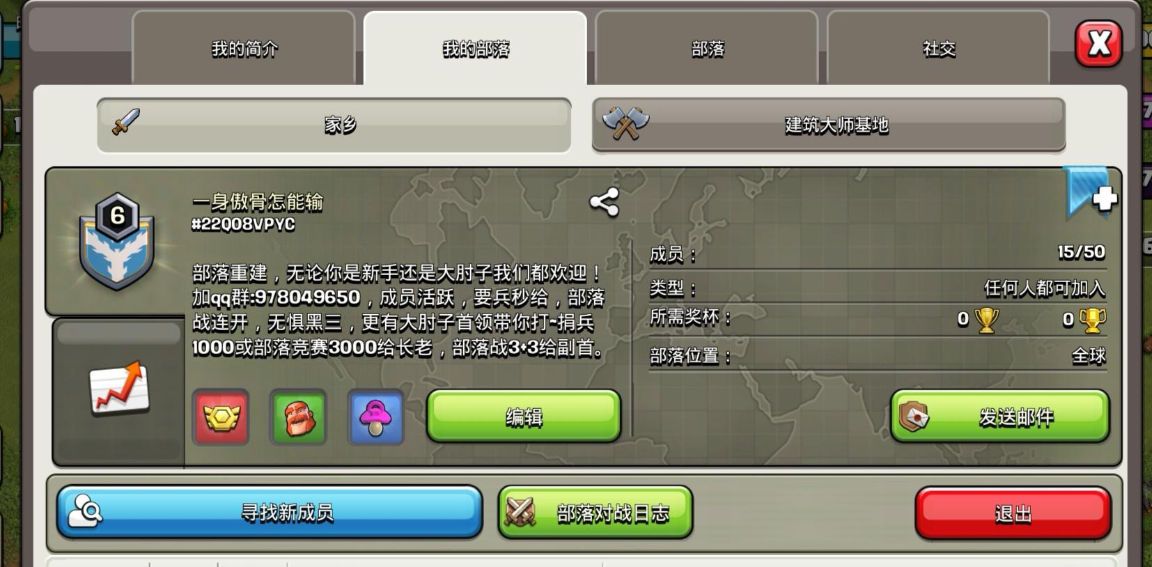 你是新手?你是速本?你不擅进攻?你想找个活跃部落?你是大佬想打部落战?我们就是你命中注定的那个TA!日常活跃,要兵秒给,部落战连开,无惧黑三,群内大佬教你打!完事具备只求一个活跃的你!