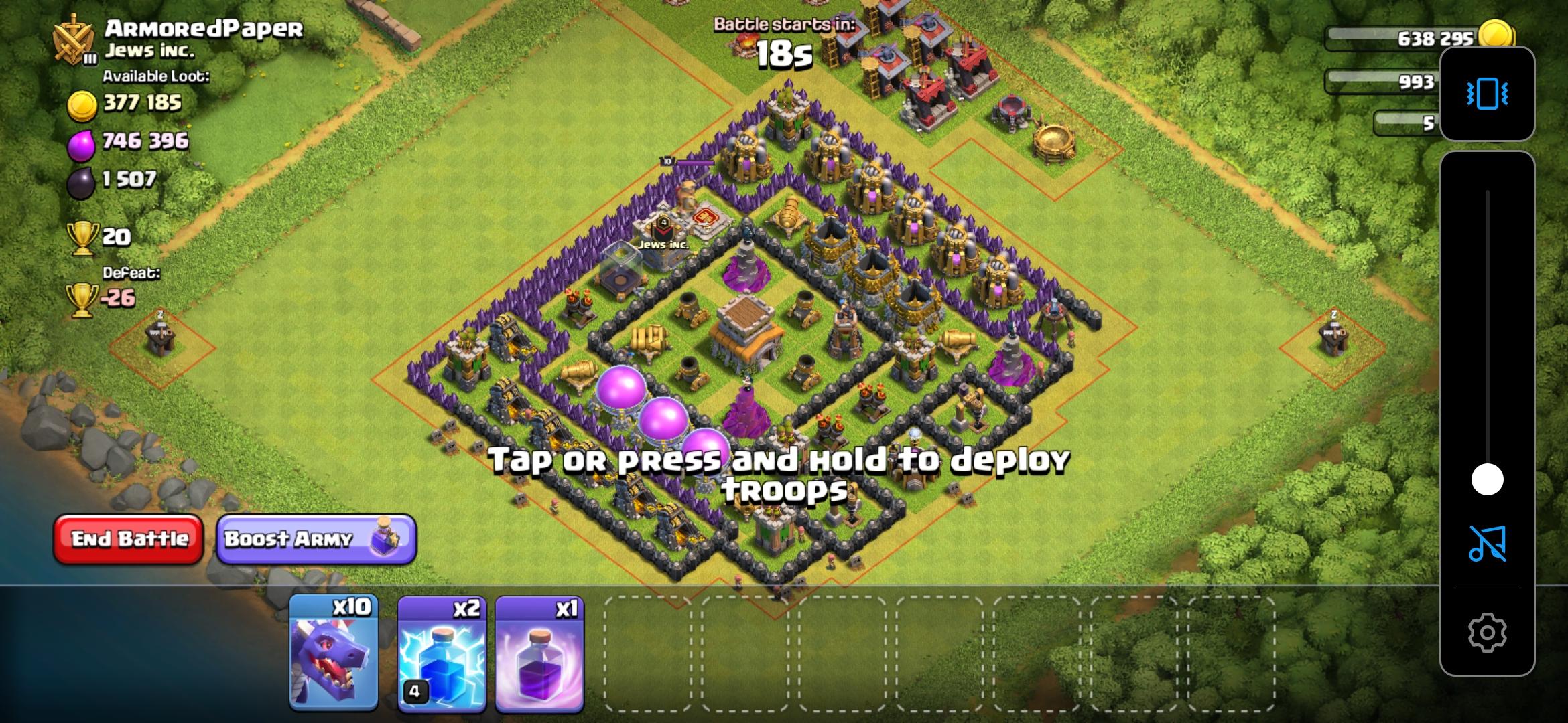 部落里有个十本的人,老成员了,居然今天部落战拿纯弓箭手打了四星,降他职还不服,气死我了,要不是老成员我就踢了