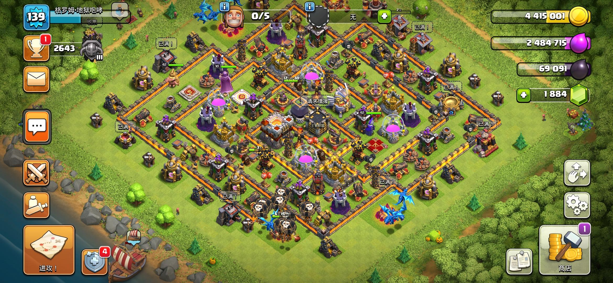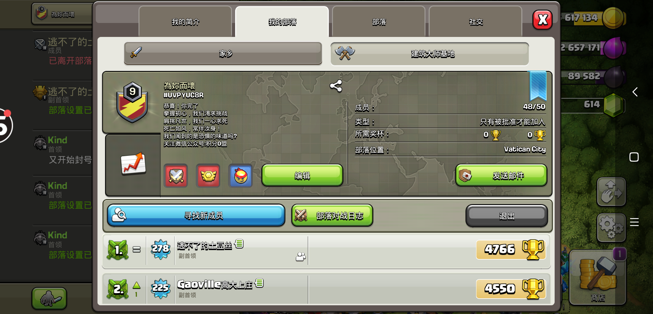 小小部落,马上10级,一半靠自己,一半靠部友。如今,小号已经满防,只差城墙。期待高本玩家加入征战大师二联赛,一起玩耍。