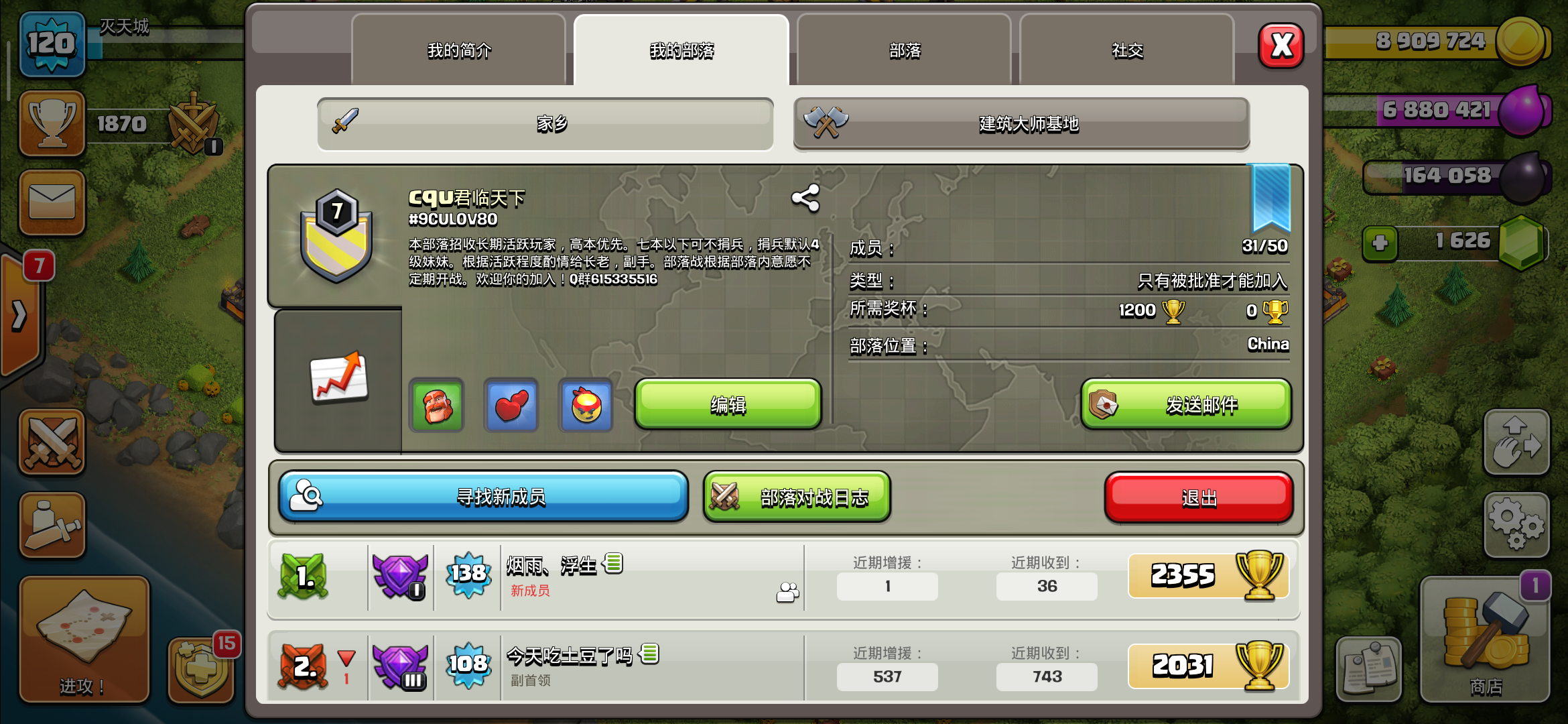 多图预警。事情是十月初 鄙人的小号加进了这个部落,八本,黄金杯。那时候单纯的想找一个小部落待着,所以日常捐兵,也不怎么发言。一日此部落首领在讨论传奇杯的打法,我就好奇问了一句,传奇杯是什么,很厉害吗?然后这个首领就开始狂喷我是个八本黄金辣鸡什么的。自此之后污言秽语不断,大家详细就看图就好了。现在此人部落已被我和我的一帮部落冲突的好友清扫,我只是想提醒大家远离这种人。最后一图是我们应对他们的做法,明