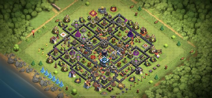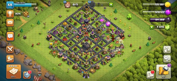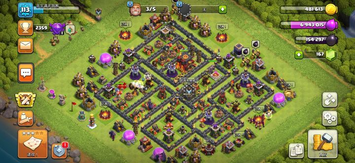 我的9级阵,资源很多也很少人抢劫…经常空着盾很久都没人打…升到水晶杯资源反而变少了纠结…降杯落来没多久城墙就全黑了…