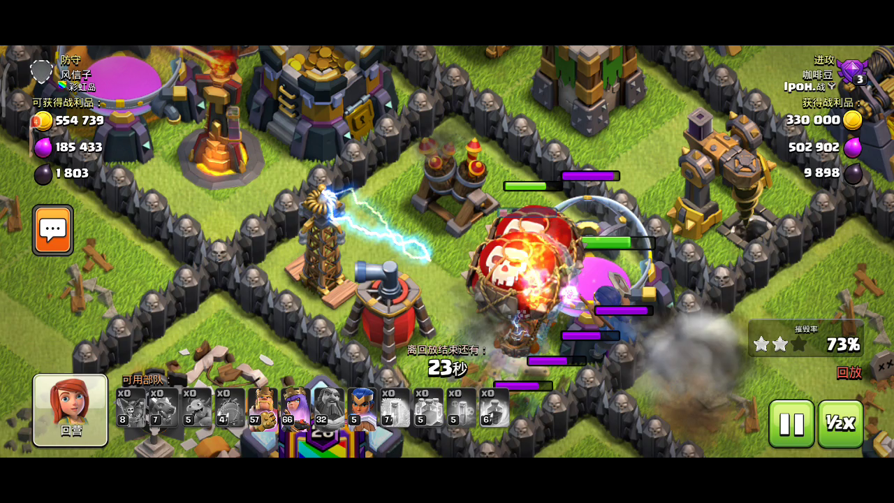 雾艹,上次首领12本打九本黑三,这次带着86个超哥就去打部落战