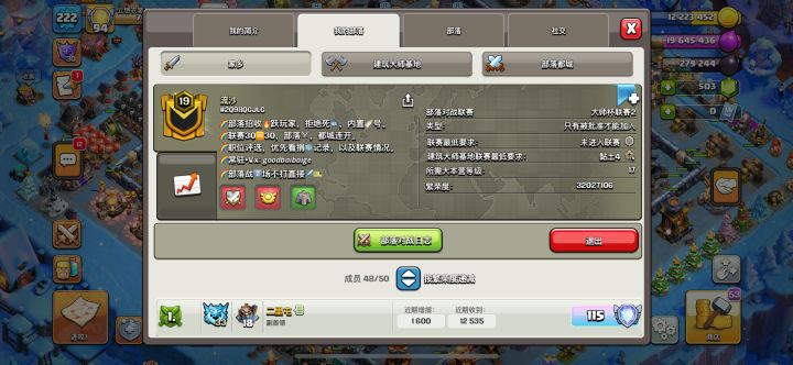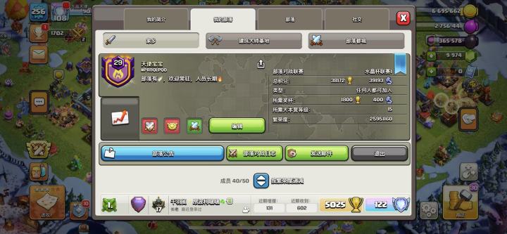 11级部落风云战奇招收8本以上活跃玩家,部落标签#VCQQCJCU,部落重建中~欢迎各路萌新大神来玩,不可以在部落里骂人!哦,忘了说明我自己是谁了,个人标签#LGCPCGU9Y,一位九本萌新嘿嘿嘿