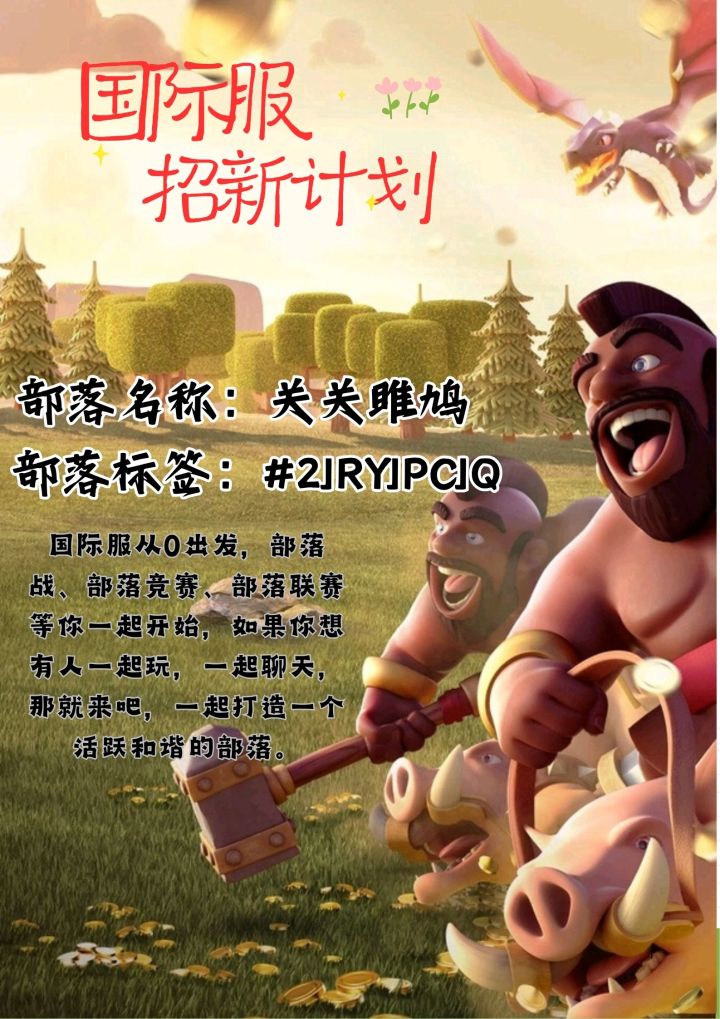 国际服部落招人请先进群,之后再进部落部落名称:向日葵幼稚园-小班部落标签:#9YQPCCJ2联赛段位:冠军3/大师1招收要求:常驻17本,联赛对战稳2争3!部落战常开,竞赛、突袭必须参加,欢迎常驻玩家加入。部落一人一坑,互相手动收捐。审核微信:wkw0924审核q群:582137420部落名称:向日葵幼稚园-大班部落标签:#28V2V2L2P联赛段位:大师2招收要求:常驻1