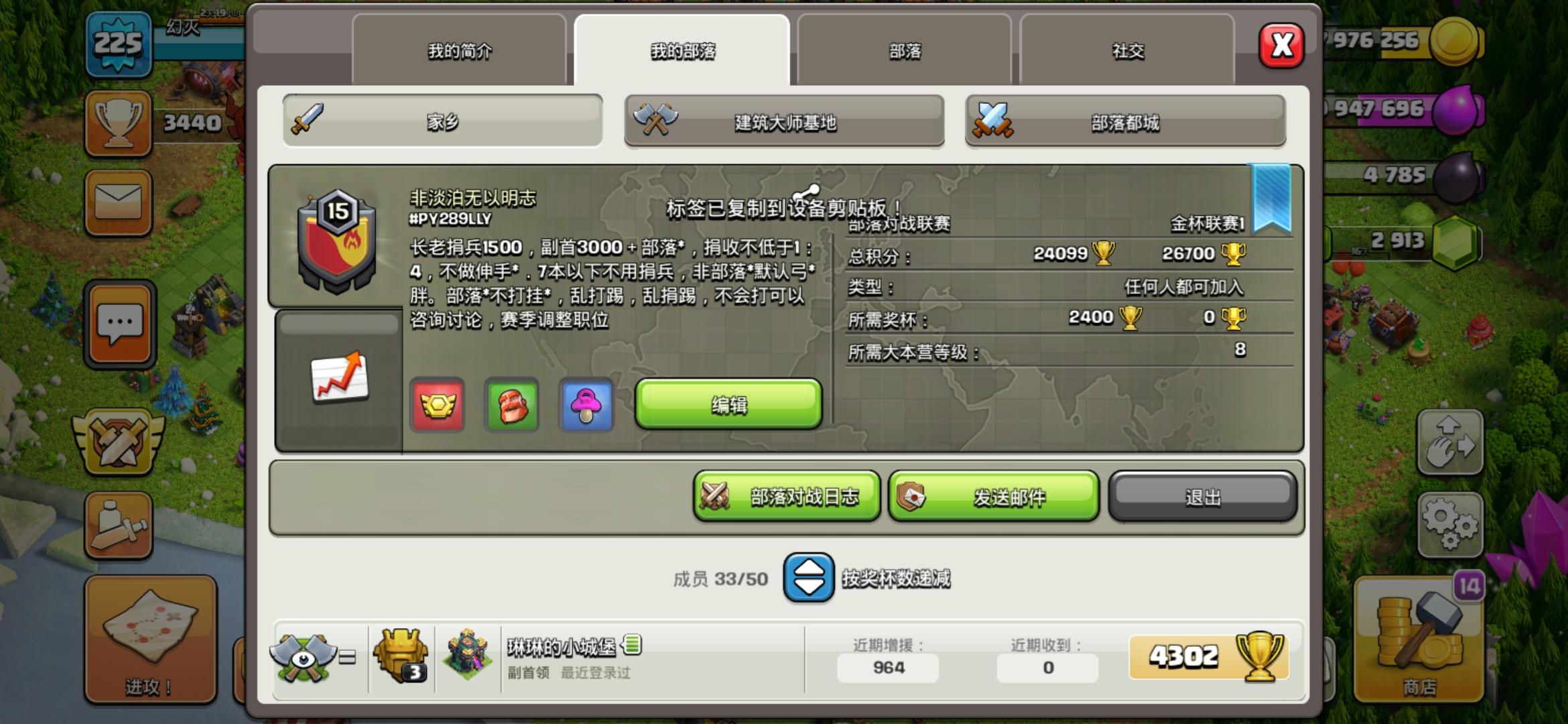 国服部落冲突更新了,欢迎萌新和回归大佬加入大家庭部落号#2QGYUP9YU常驻进QQ群626958784微信mua2000315部落以联赛竞赛为主,伸手党误入,死鱼请绕道,部落对战不停指挥者误入部落庇护萌新也不亏待大佬目前水晶杯联赛1欢迎加入!!!!!!