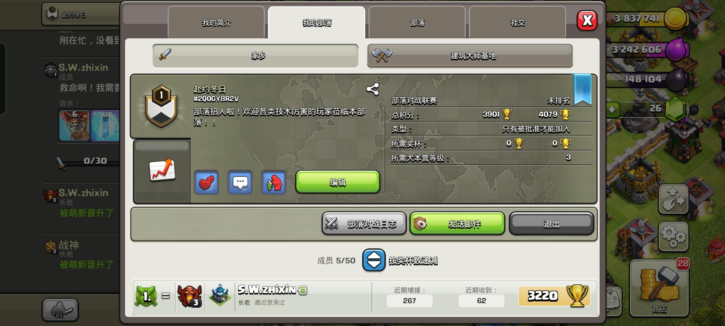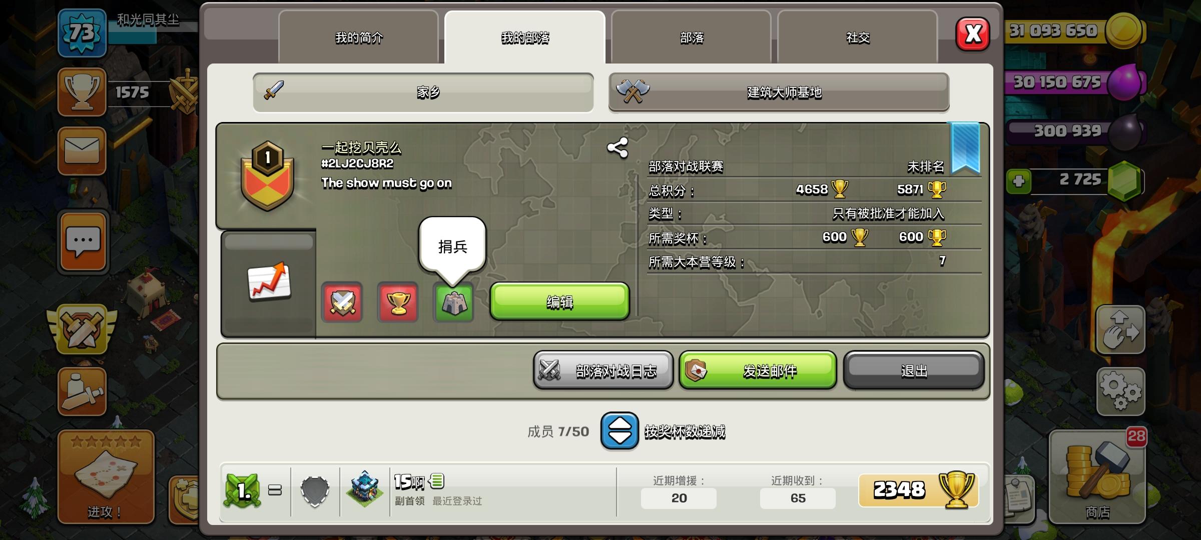 1级部落招人啦!欢迎任何萌新和大佬,部落内部活跃,有Q群,捐兵积极,让我们共同向着更好的未来发展!Q群(484192820)