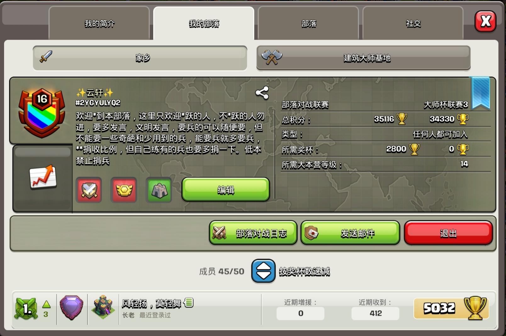部落招人咯 目前11个人 都长期在线。快来快来 15个人就可以打联赛咯 没有要求 欢迎新老玩家