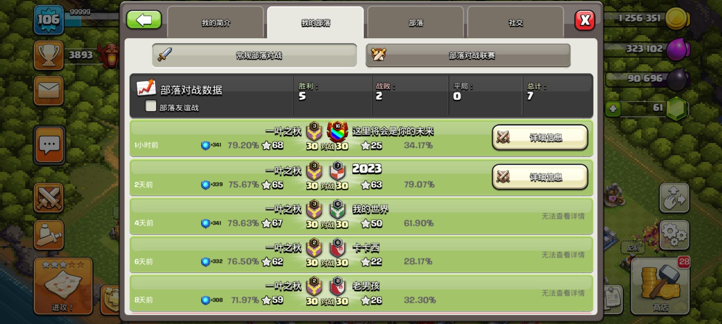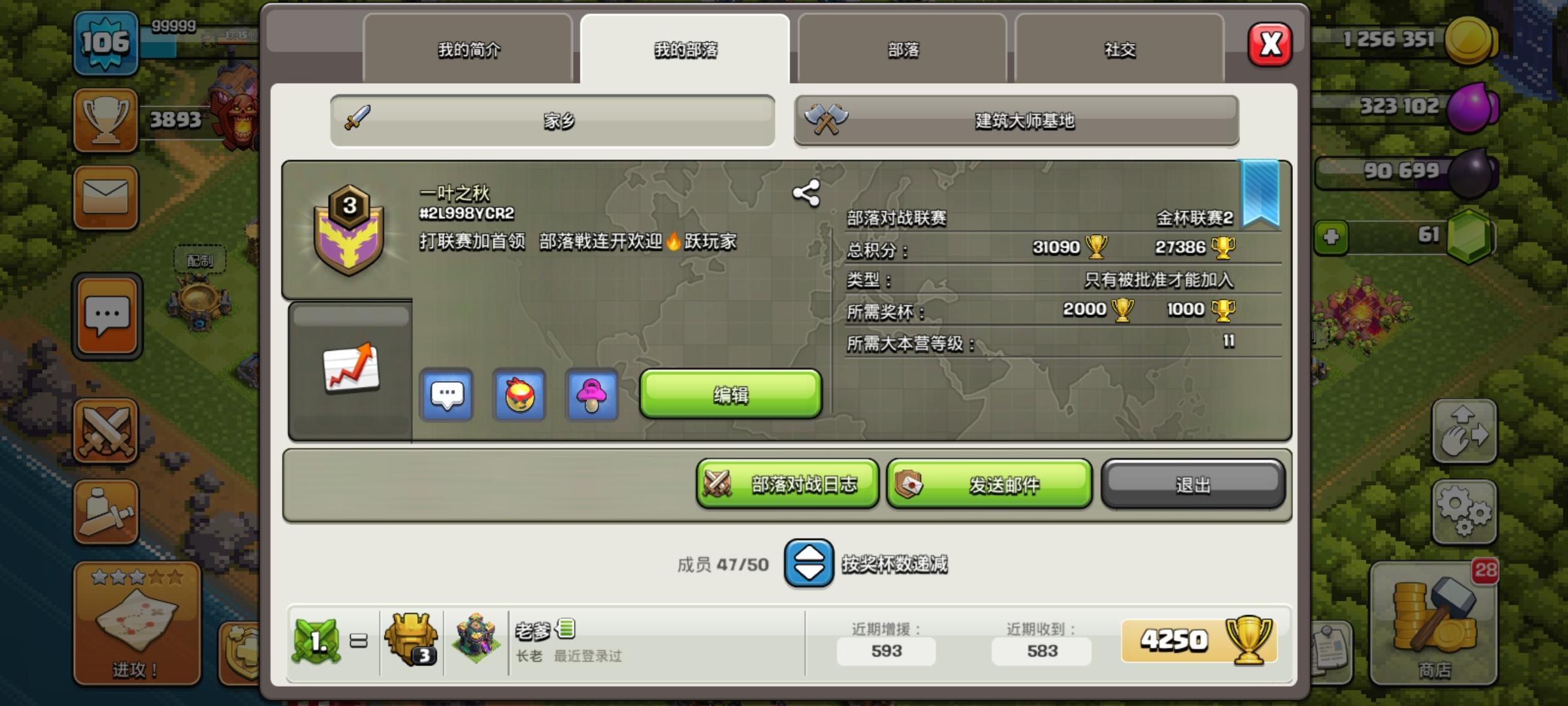 新建部落收11本以上活跃玩家,部落战连开,联赛金杯2,竞赛做满,捐兵非常积极,部落战一直连胜 部落标签:#2L998YCR2