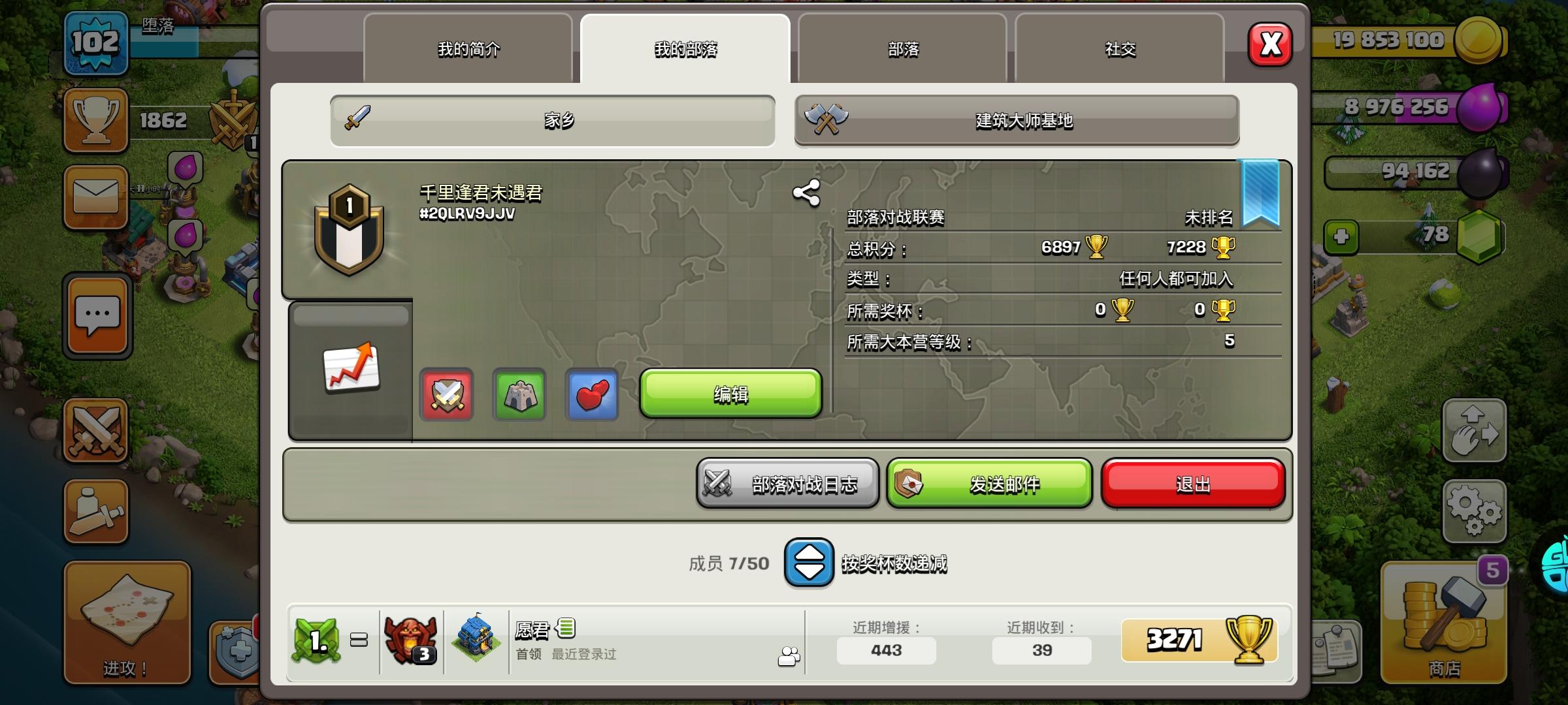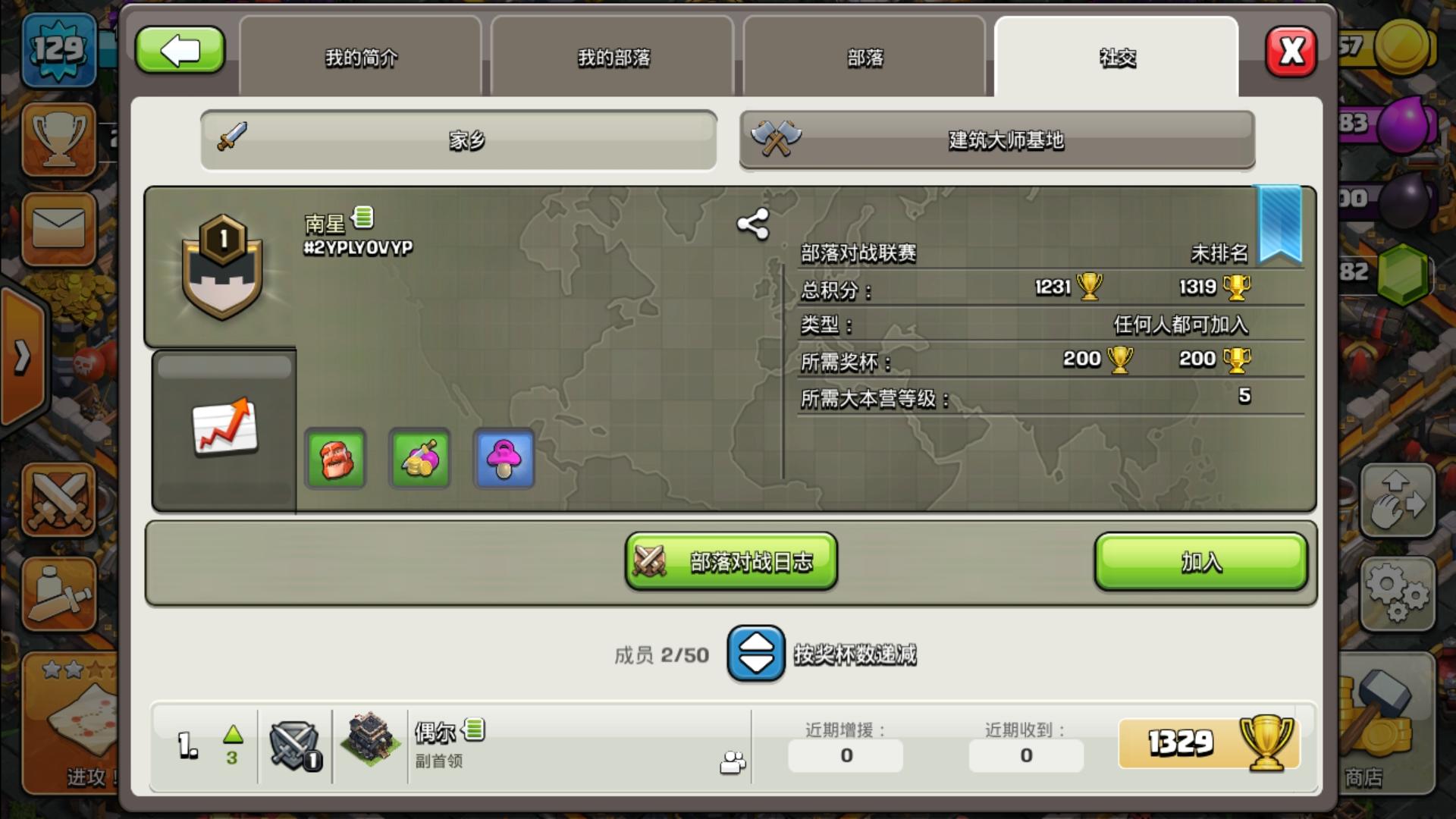 浩然天下#2Q2QCGUUU新建部落招人,欢迎新老玩家加入大家一起努力共同成长竞赛已做满欢迎常驻玩家入住,为接下来的联赛准备。
