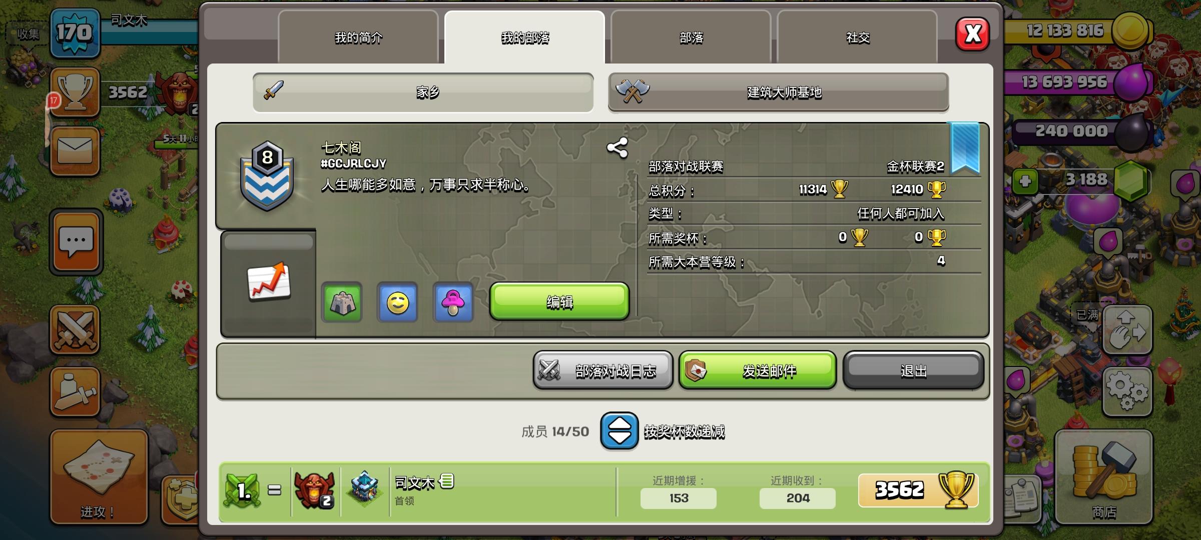 收十三本以上非速本常驻玩家 部落战连开,也收满级战斗系大佬打联赛(ps:大佬佛系一点即可 )部落很活跃,群里也热闹 。部落优势:1.有三个十四本自动奶捐兵,超级法师超哥常开 。 2.本部与壳子都在大师.3.竞赛每次都很快做满 。欢迎各位加入噢 群号:975676640