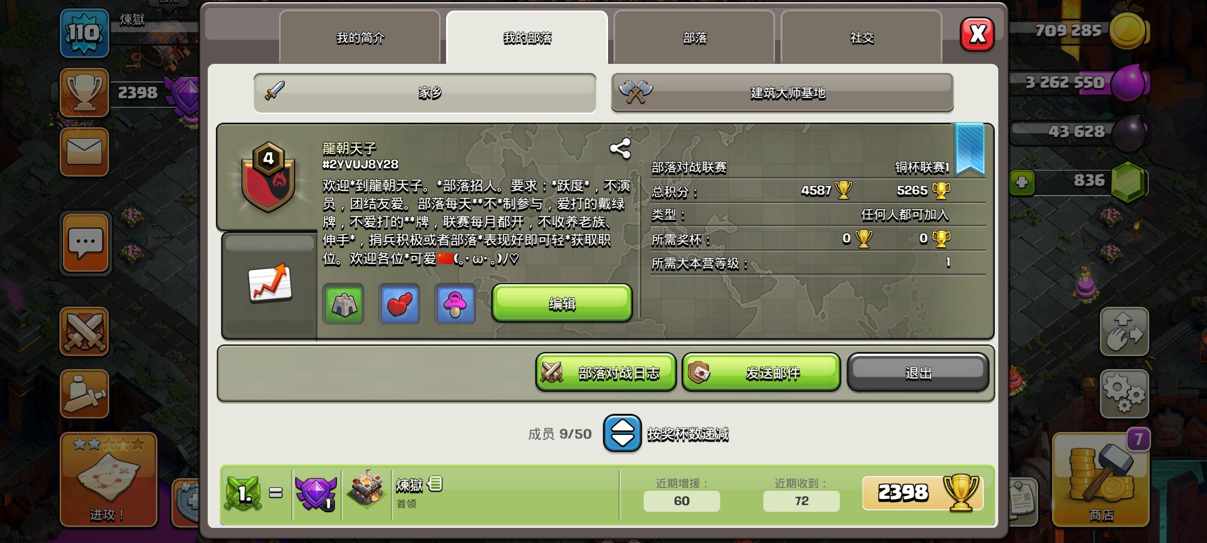部落招人,需要能打部落竞赛和部落联赛的,大本营也没要求,如果进不来在下面评论我来调设置,欢迎各位小伙伴加入我们,部落编号#QPG2GGU0 有奶,部落竞赛赛快开了,缺人