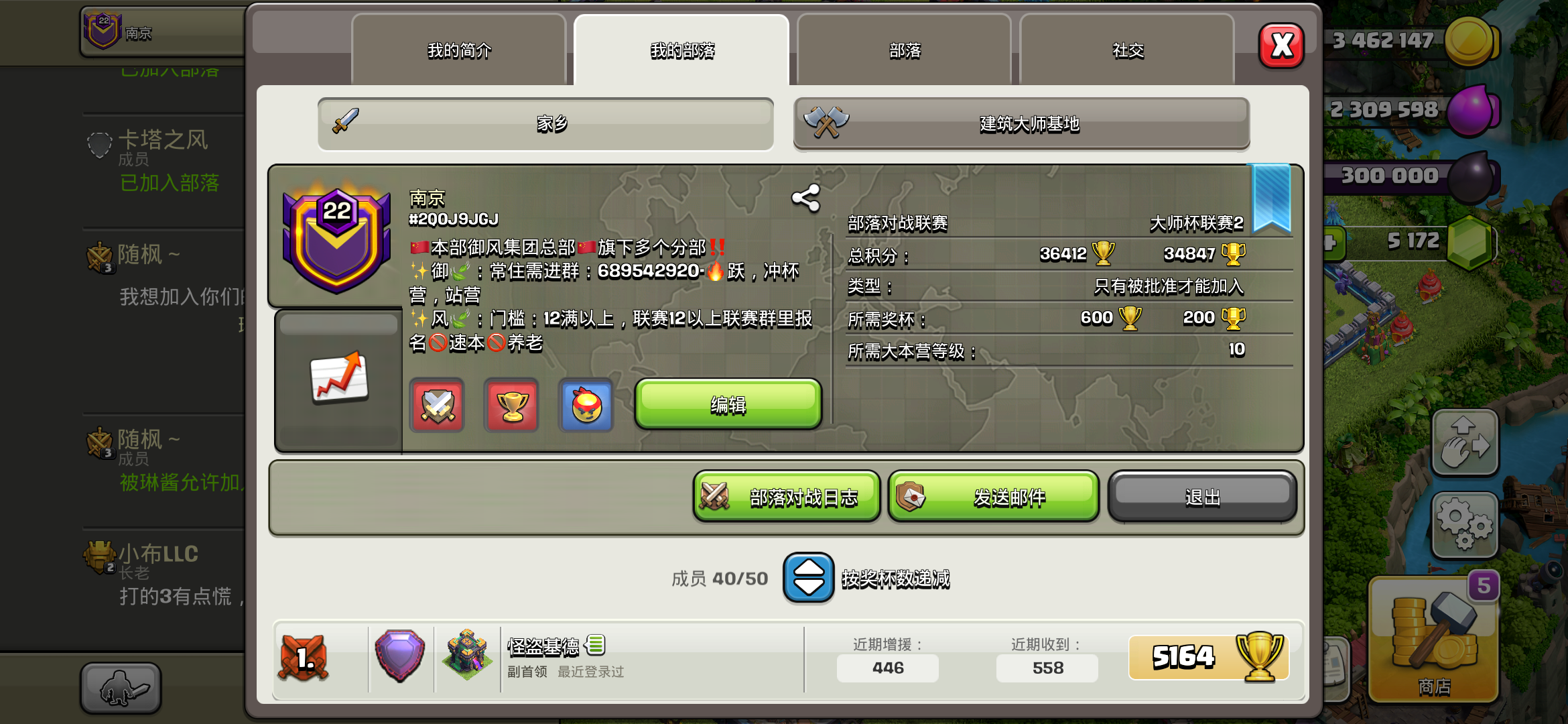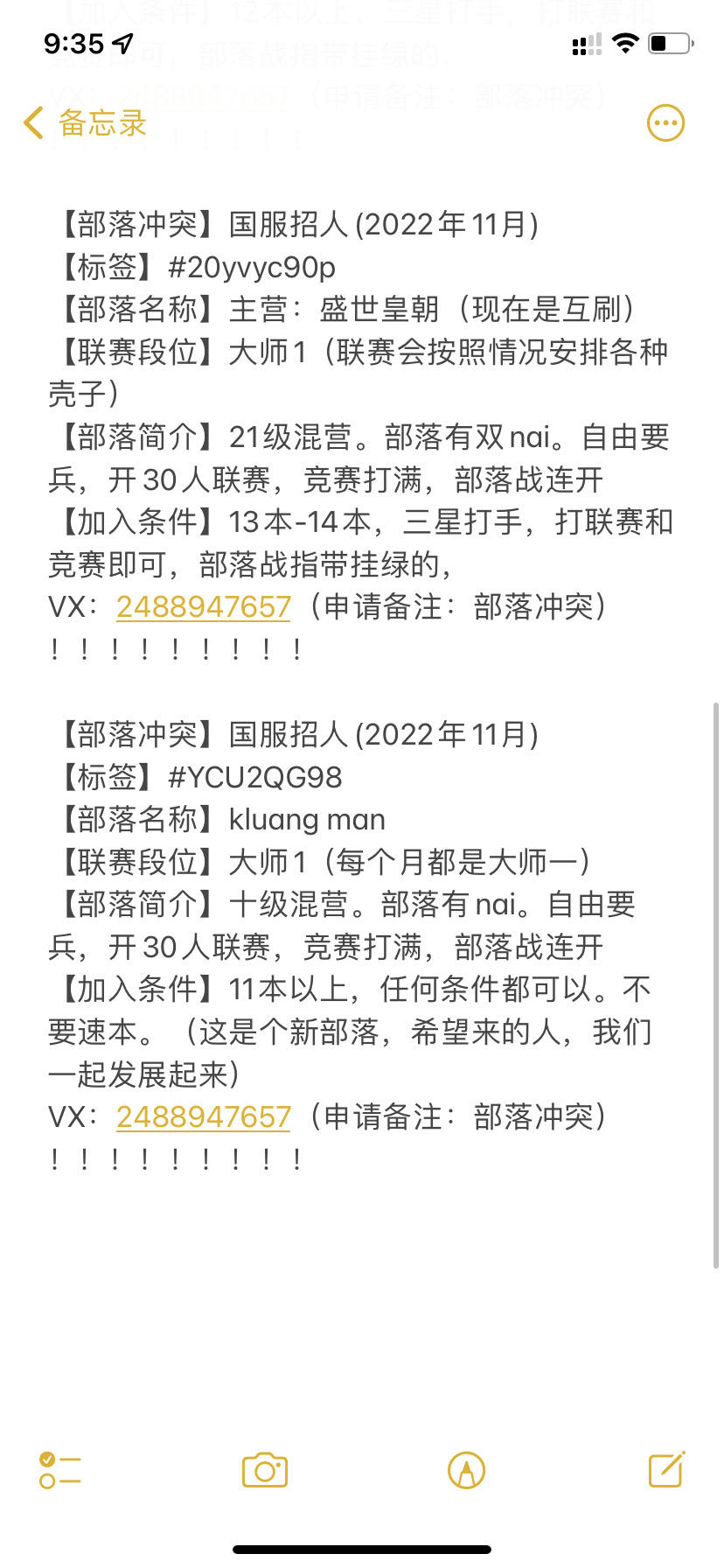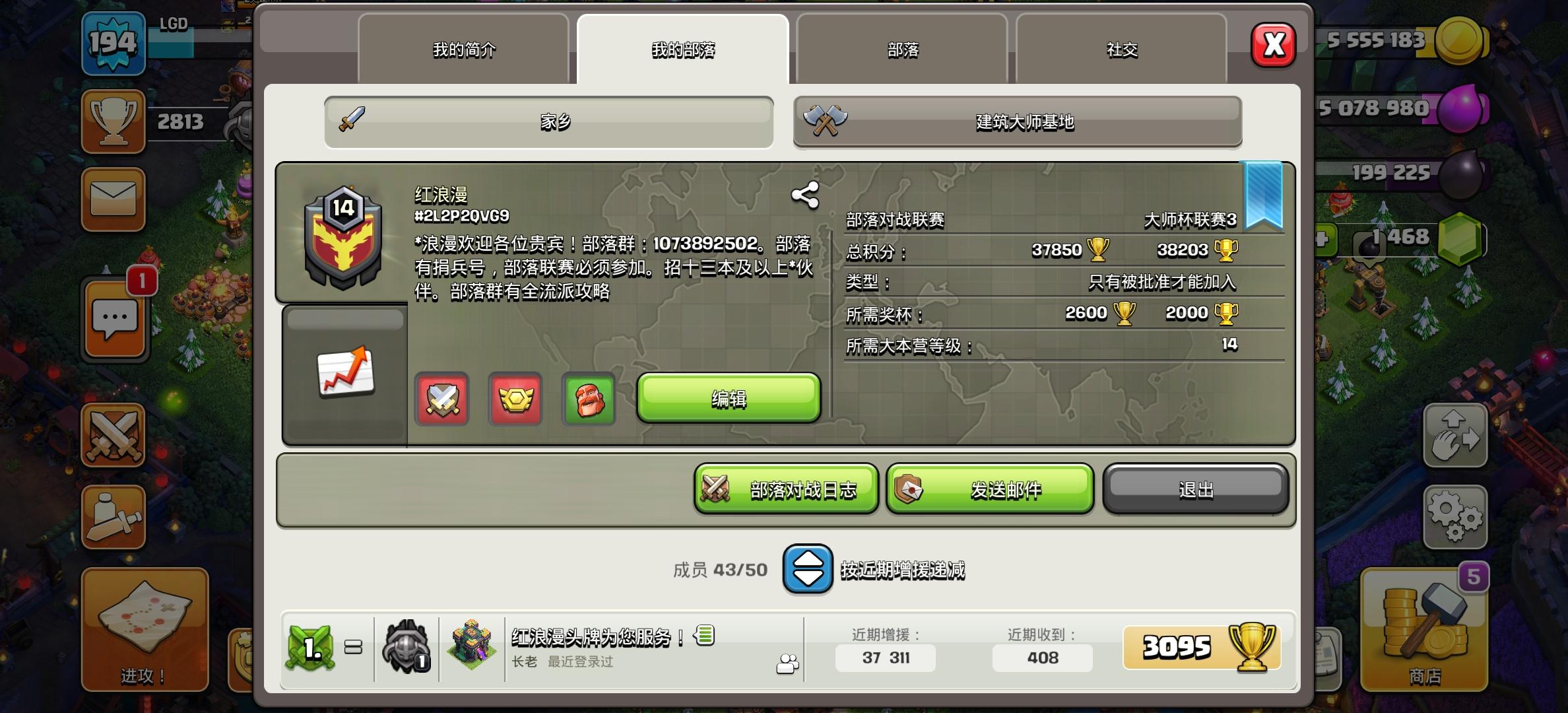 9本起收,要求不高,活跃常驻,参战必打,竞赛1000,欢迎有意的各位萌新大佬加入我们这个小部落!(悄悄说一句,我们的联赛等级是大师三哦😉😉)