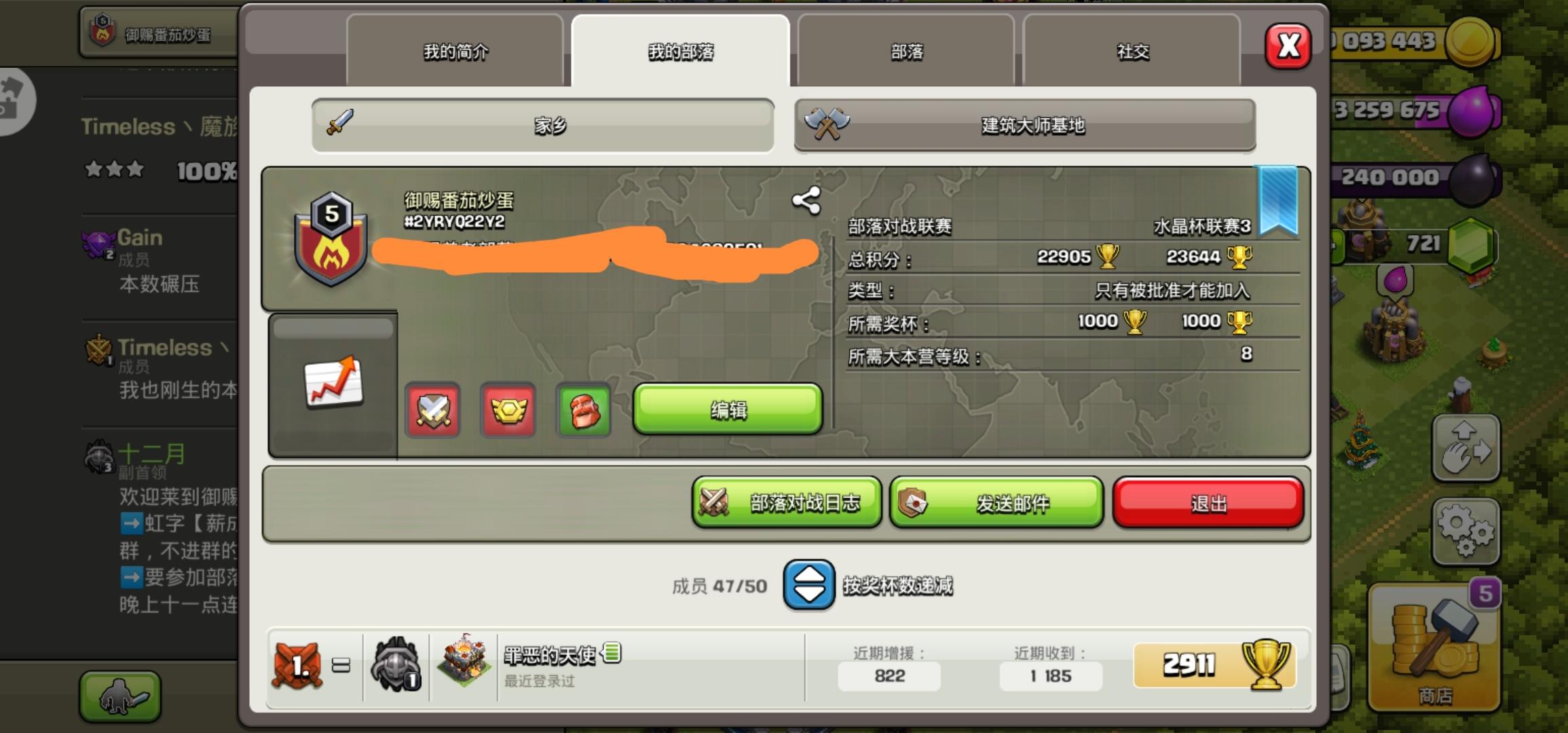 部落招人,只需要半活跃的人就行,部落竞赛和部落联赛能打就行,大本营也没要求,如果进不来在下面评论我来调设置,欢迎各位小伙伴加入我们,部落编号#QPG2GGU0